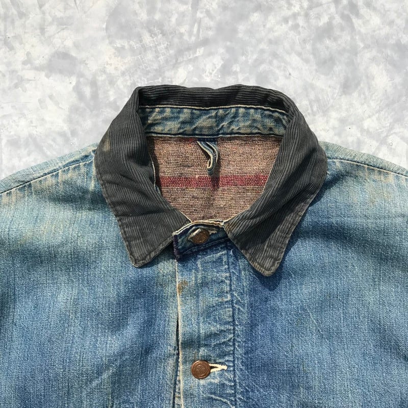 60's BLUE BELL ブルーベル ヴィンテージ デニム カバーオール ブランケット ワークジャケット ダメージ有り フェード SIZE 38 希少サイズ ラングラー