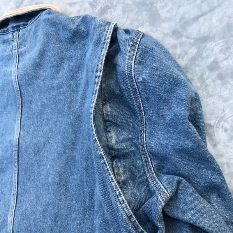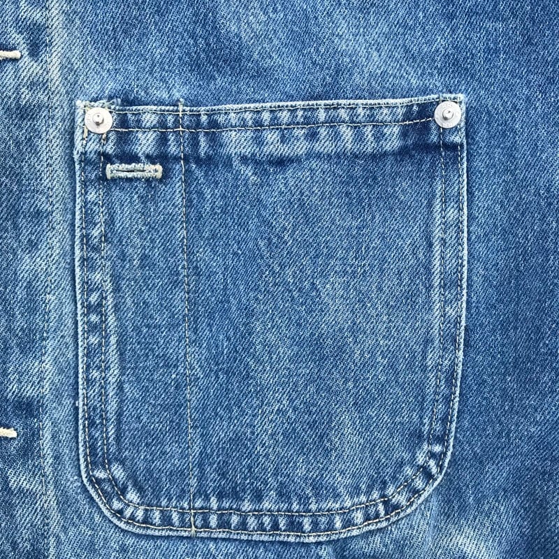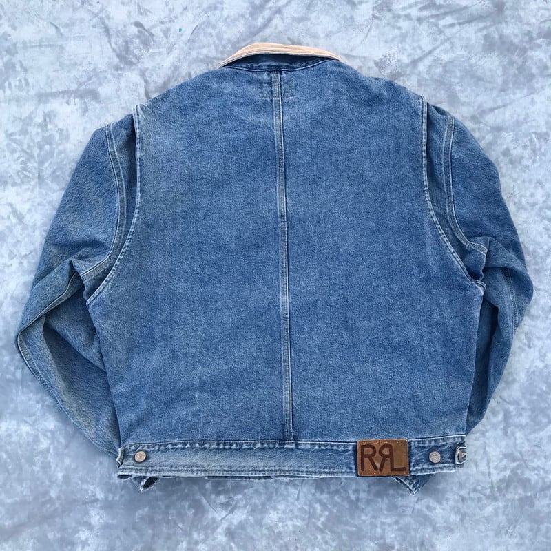 90sのRRL ダブルアールエルのデニムジャケットです。今では希少な三ツ星タグです。襟がコーデュロイで切り替えになっており、ハンドポケットがございます。全体のフェード具合もこれからの季節にぴったりです。サイズはLと良いサイズ感ですので、男女共に使いやすい1着です。