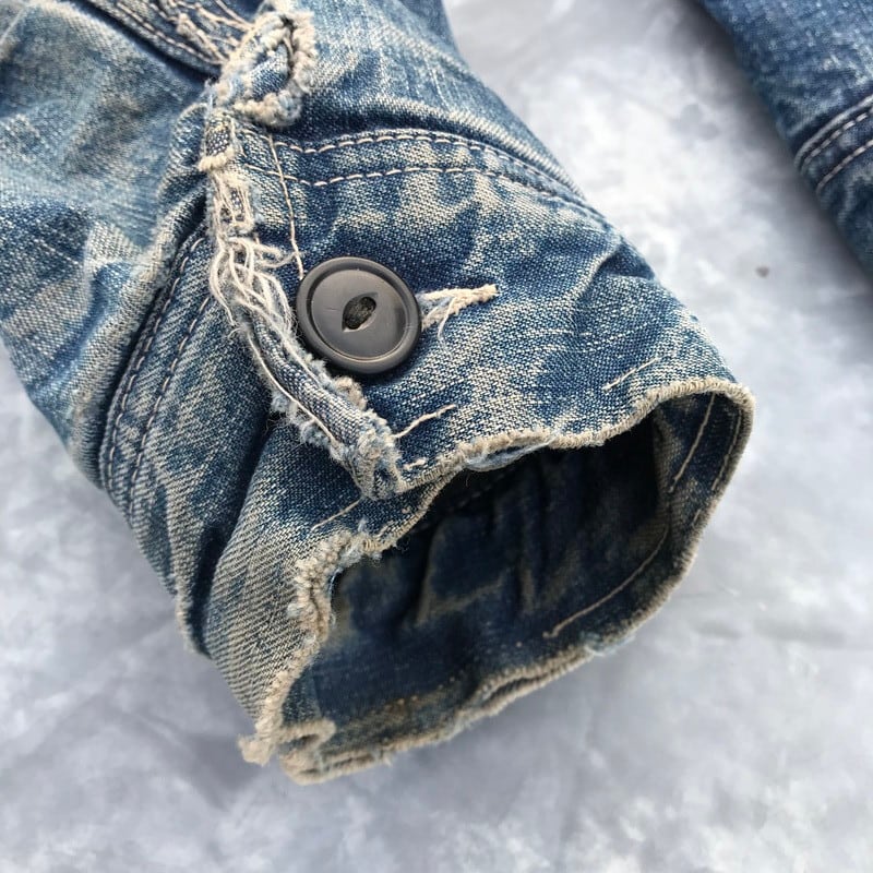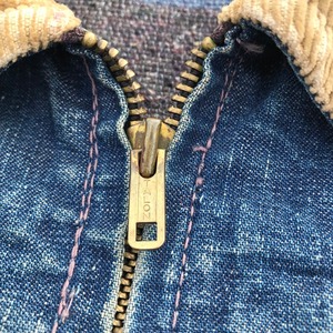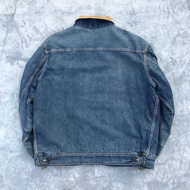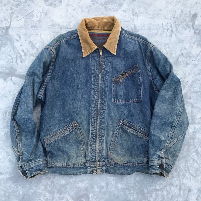 60s頃のLee191-LB、裏地ブランケットデニムジャケットです。定番のデニムジャケットですが、やはり裏地がブランケットの物は人気があり、この年代の191-LBは特におススメです。フロントは棒TALON、胸元はひし形のチェーンジッパー。ピスネームにはMR表記無しのタイプです。袖口にダメージはございますが、全体のフェード感も素晴らしく雰囲気抜群です。希少な大き目サイズです。