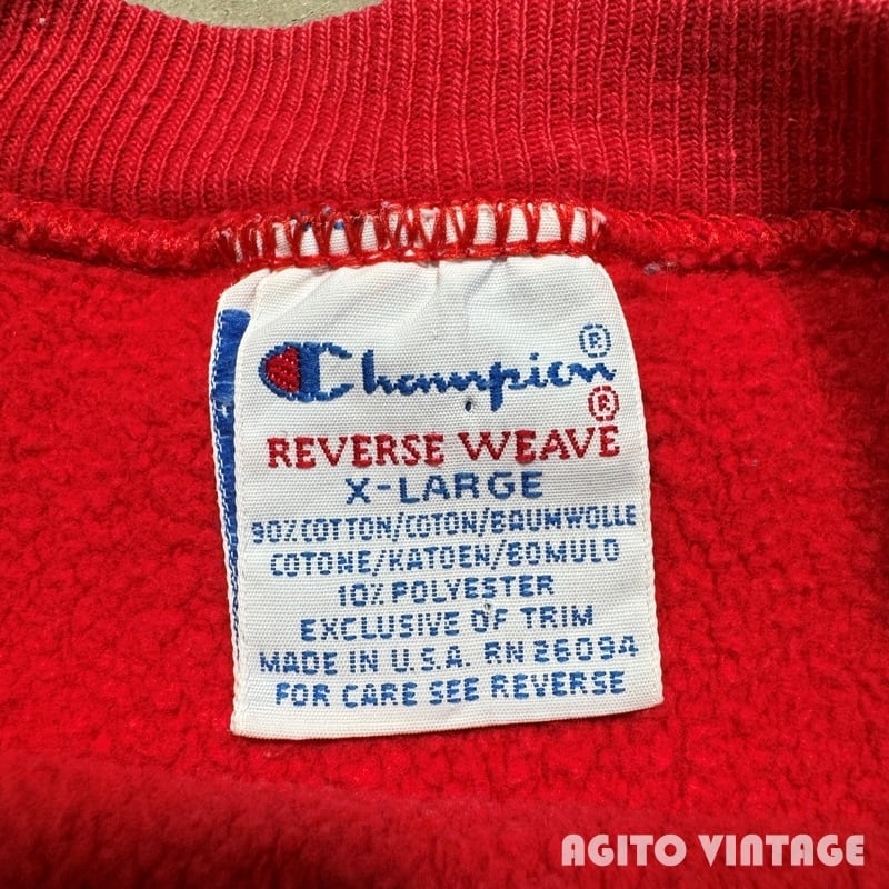 90's Champion チャンピオン リバースウィーブ スウェット 刺繍タグ 目付き レッド X-LARGE USA 製 希少 ヴィンテージ BA-2720 RM3141H