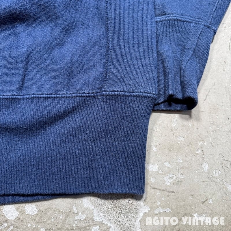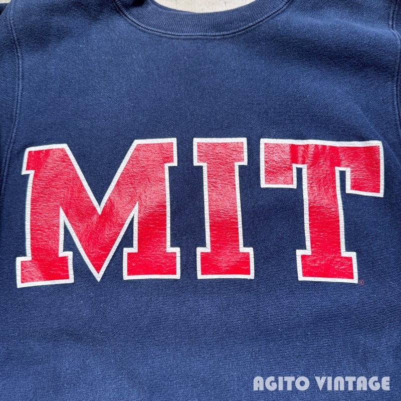 90年代のChampionリバースウィーブスウェットです。USA製の刺繍タグが付くコットン/ポリエステルボディの1着です。ご紹介するこちらは、名門校で有名なMIT(マサチューセッツ工科大学)のプリントが入る個体です。グレー×レッドの組み合わせが一般的なのでネイビー×レッドは比較的見かけないのかなと思います。全体的に色褪せ等の使用感があり、左袖にうっすらと汚れがございます。その他ダメージは無くコンディションの良い個体だと思います。SMALL表記で身幅も小さいので、小柄な方細身な方にお勧めです。ネイビーの経年変化も合わせて楽しんでみてはいかがでしょうか。