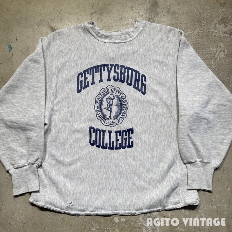 90's Champion チャンピオン リバースウィーブ スウェット カットオフ GETTYSBURG COLLEGE 刺繍タグ X-LARGE USA製 希少 ヴィンテージ BA-2724 RM3145H