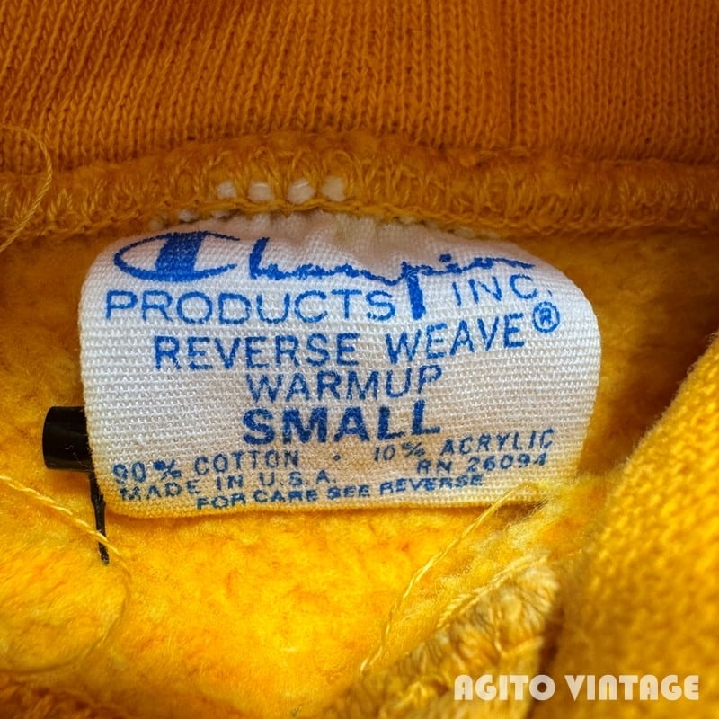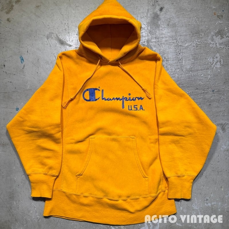 70's~80's Champion チャンピオン リバースウィーブ スウェットパーカー 単色タグ スクリプトロゴ イエロー USA製 希少 ヴィンテージ BA-2730 RM3151H