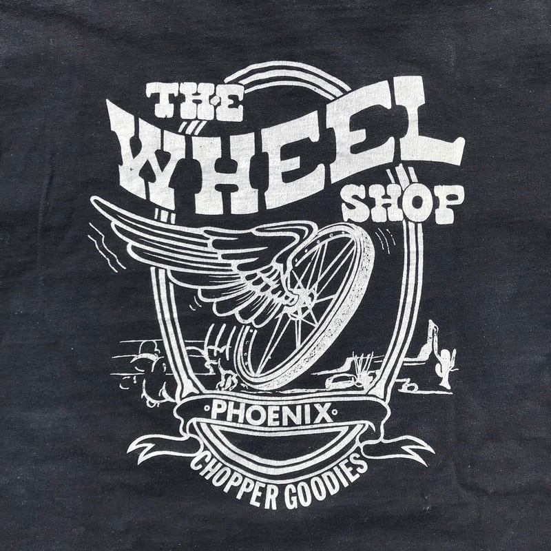 80’s HARLEY DAVIDSON Tシャツ Hanesボディ イーグル ブラック THE WHEEL SHOP USA 希少 Mサイズ メンズ レディース バイカー