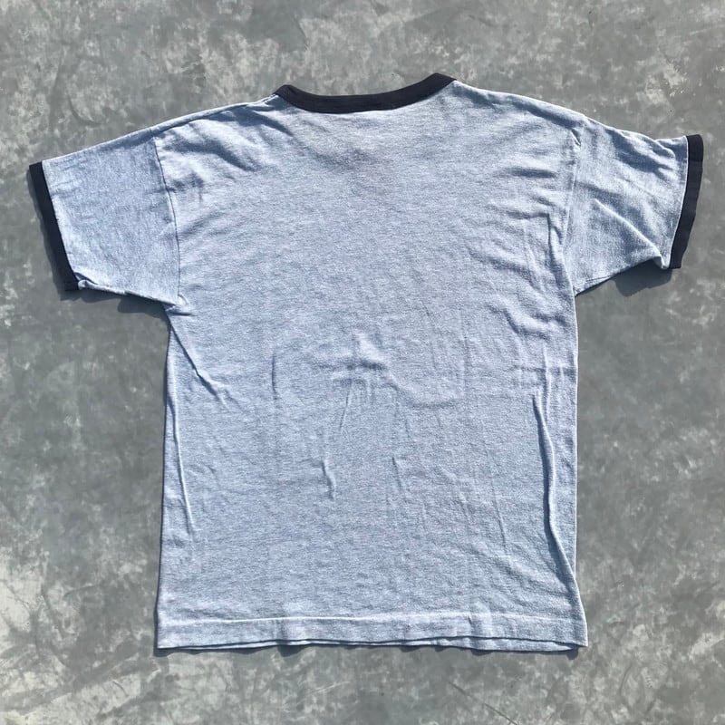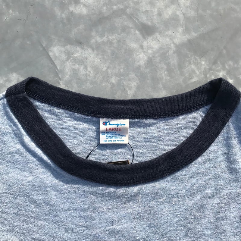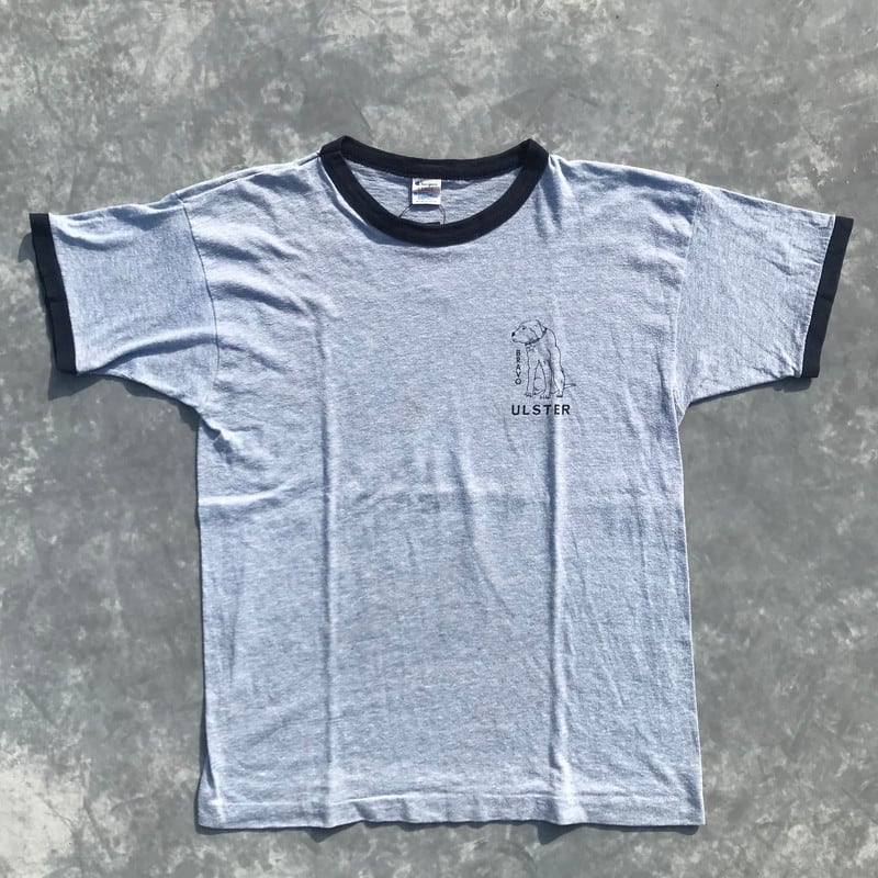 80's Champion チャンピオン リンガーTシャツ ブルー 霜降 ULSTER 犬 DOGプリント トリコタグ Lサイズ
