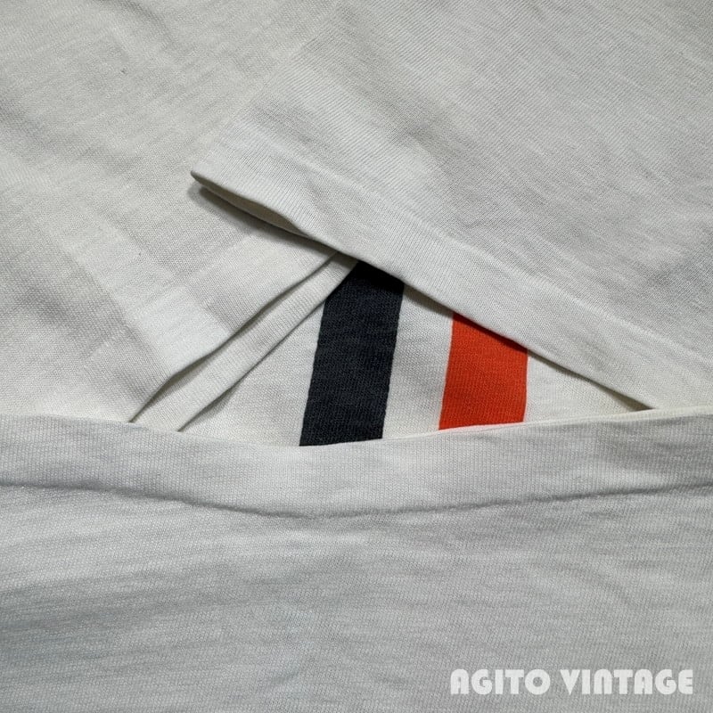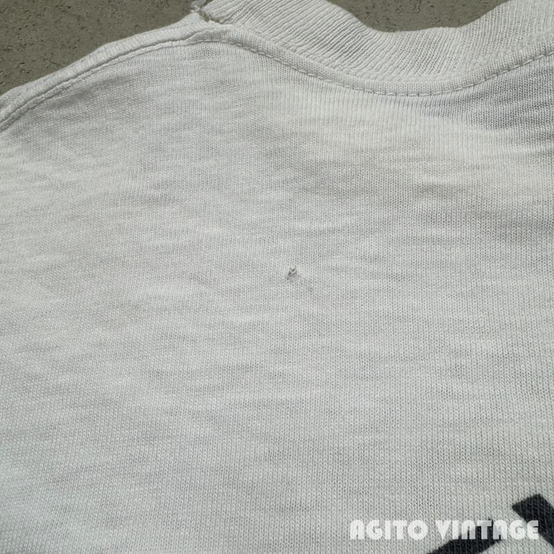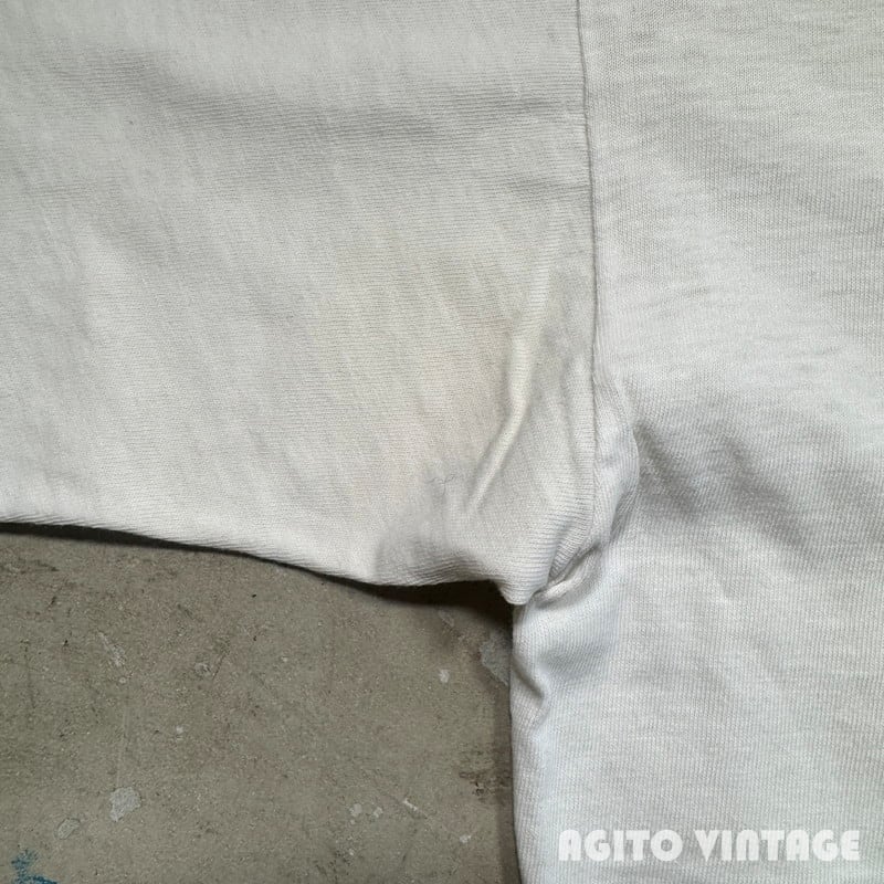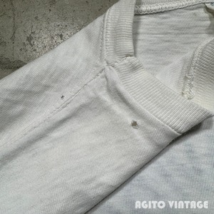 60年代から70年代初頭頃のCHAMPION HARLEY DAVIDSON Teeです。PRODUCTS表記が入るタグが付きます。両面に染み込みでHARLEYDAVIDSONのプリントが入ります。ネック横と腹部、背面にいくつか小さなダメージがございます。全体的にねじれが生じていますのでフロントのプリントが斜めになっています。脇にうっすらとシミがございます。タグの下部が解れて得いますがMEDIUM表記です。縮みがあるため実寸はSサイズ相当で小さめです。CHAMPION×HARLEY DAVIDSOのアイテムは古い年代から様々存在し、コレクターも多いのでお探しだった方は是非いかがでしょうか。サイズが合う方はこの機会をお見逃しなく。