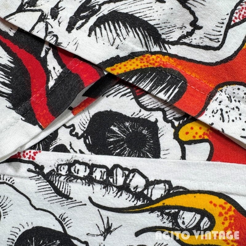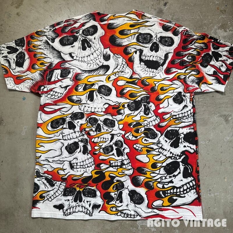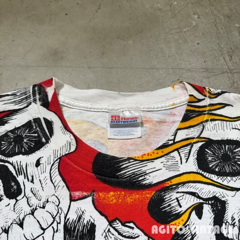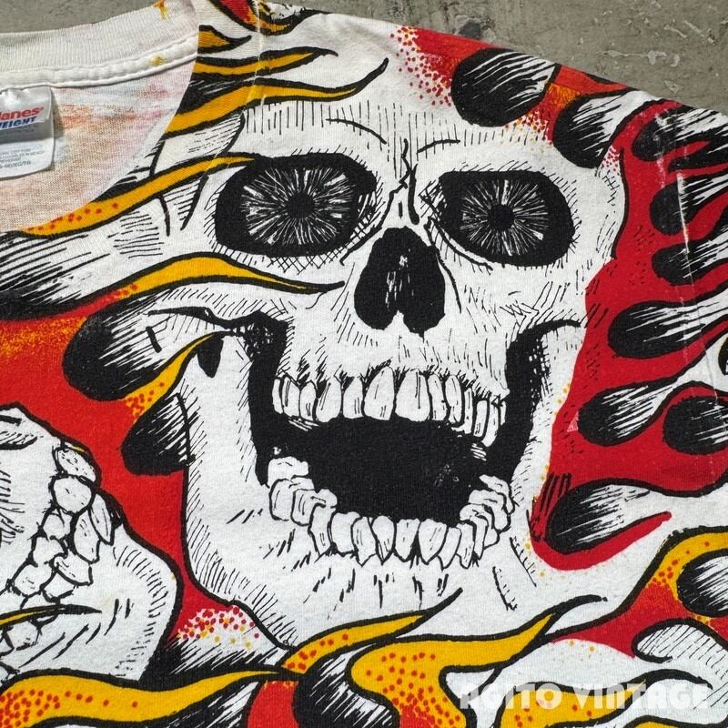 90's~ Hanes Burning Skull バーニングスカル オールオーバープリントTee B.A.R.© AOP ミントコンディション メキシコ製 XLサイズ 希少 ヴィンテージ BA-2743 RM3164H