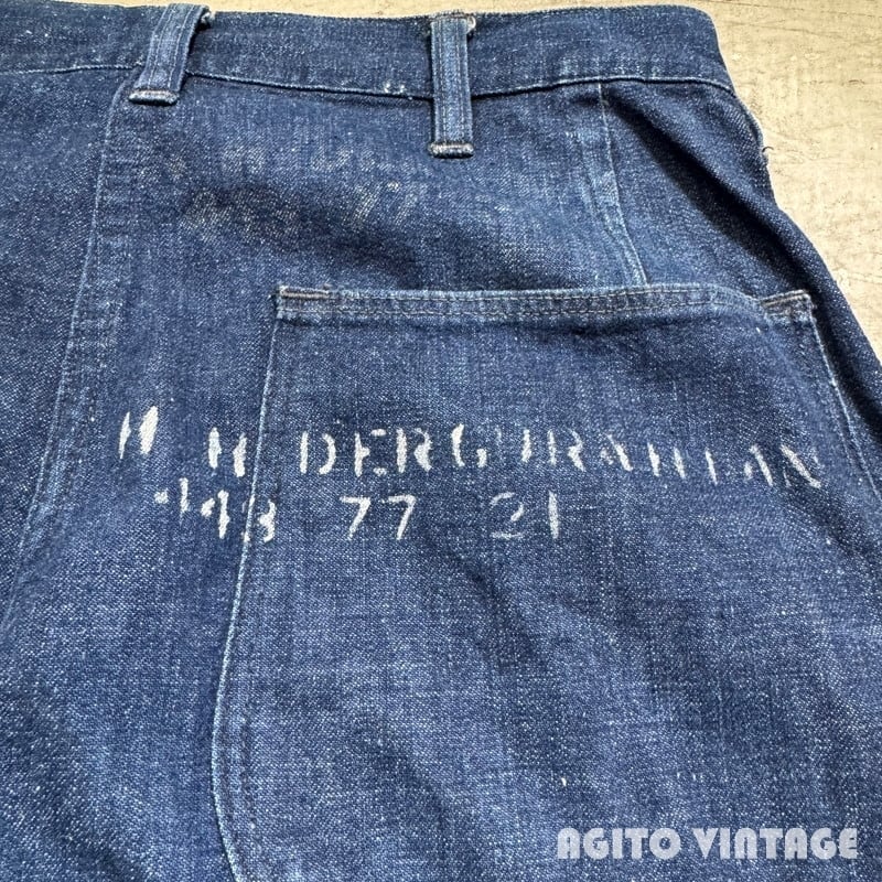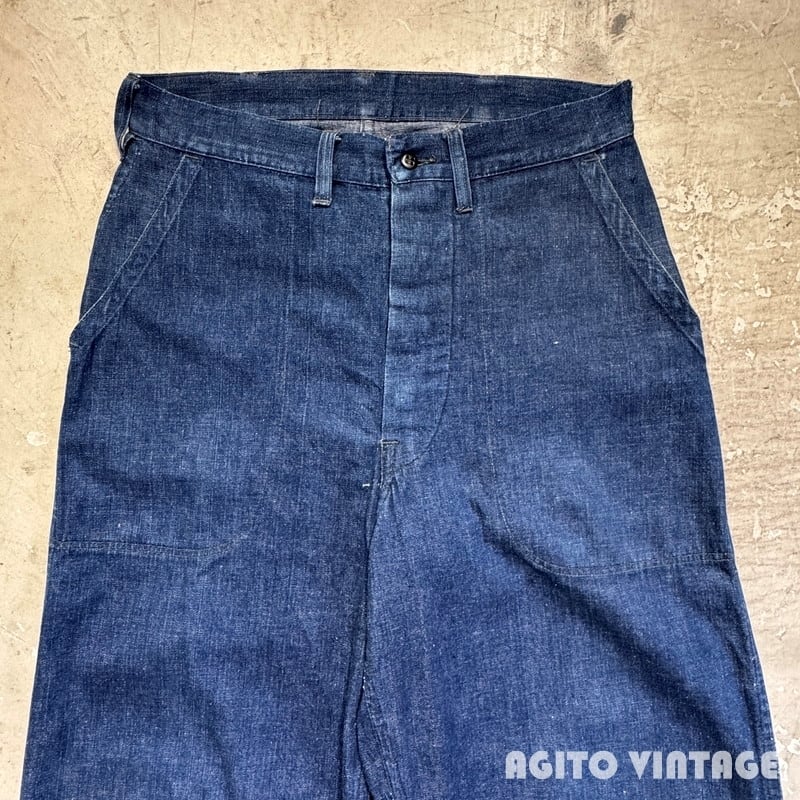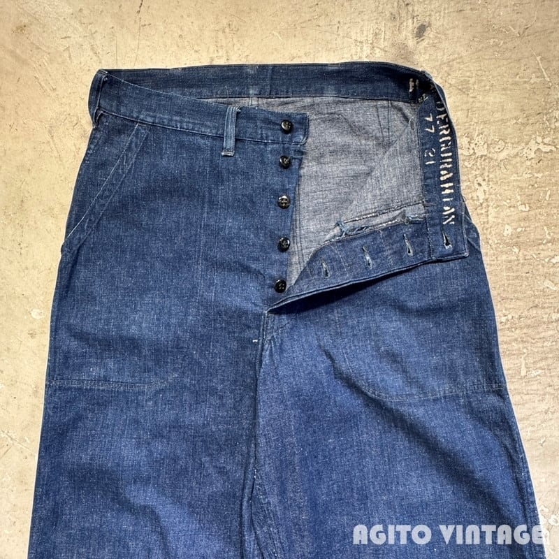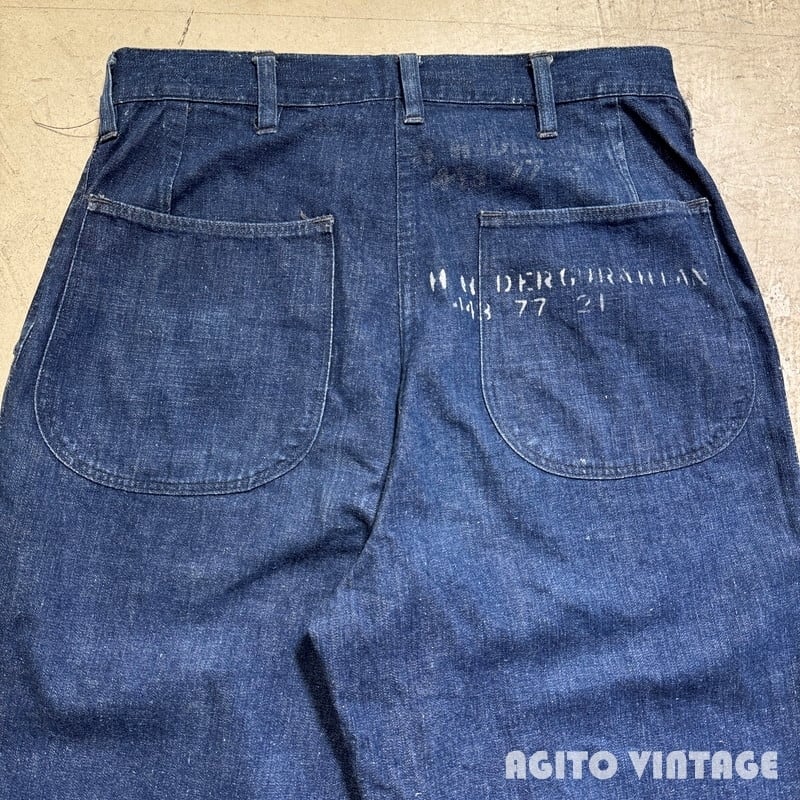 40's U.S.NAVY M-45 デニムトラウザーズ ベイカー 後期型 濃紺 ステンシル入り USN ミントコンディション WW II 第二次世界大戦 ウエスト実寸W32 希少 ヴィンテージ BA-2757 RM3178H