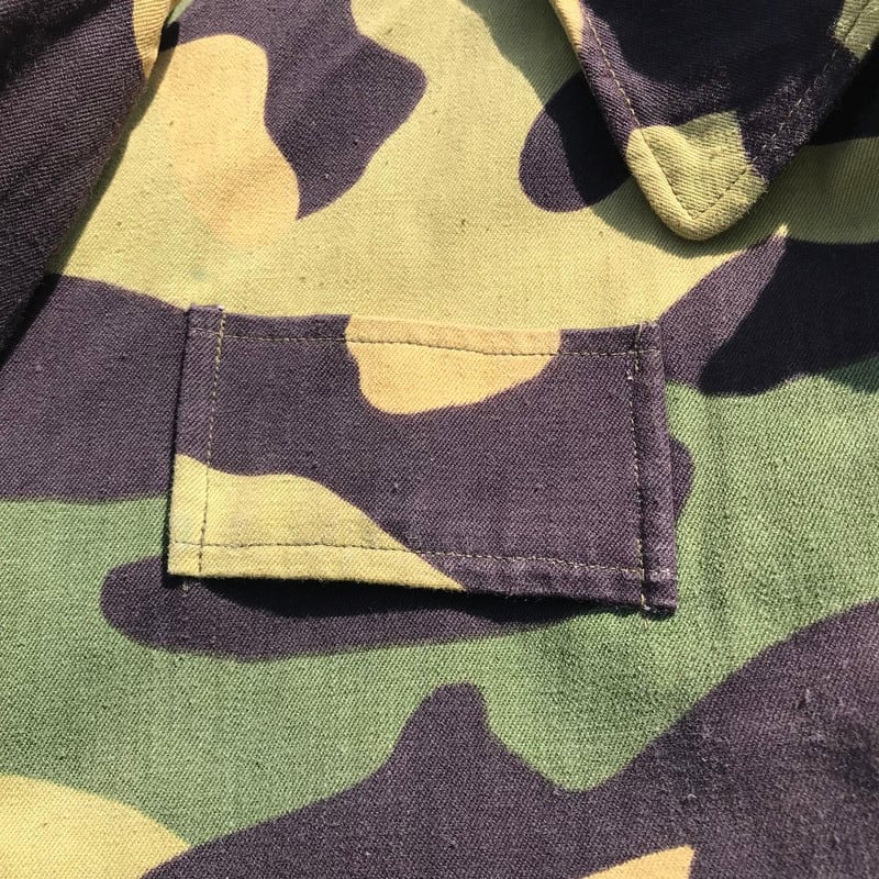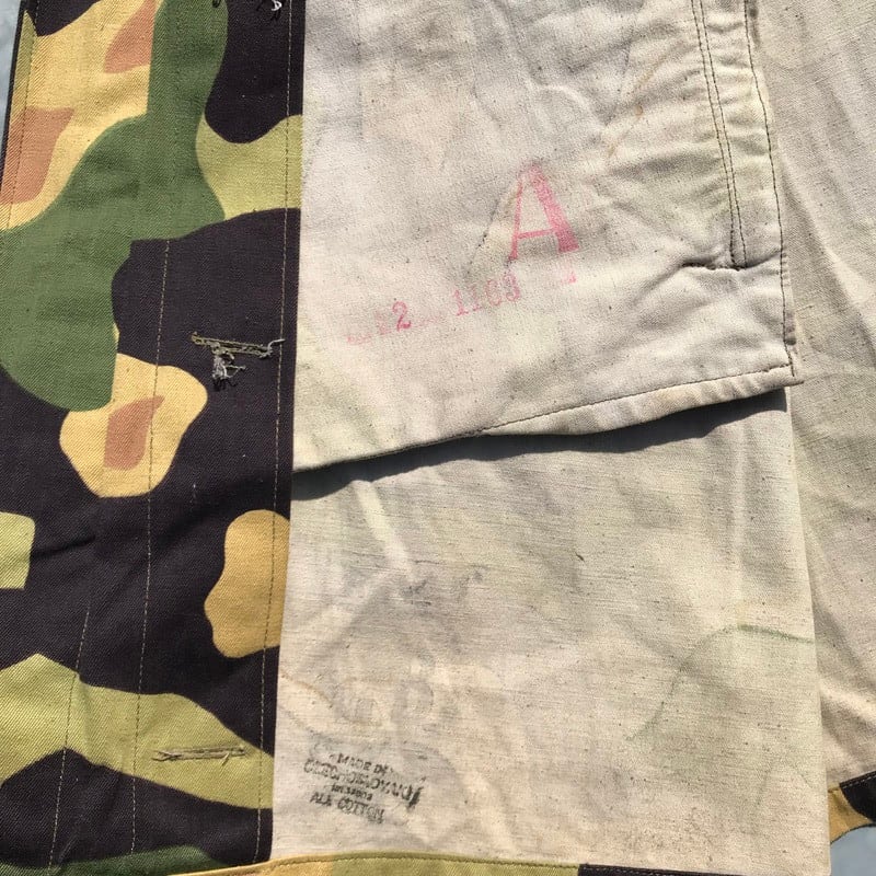 60年代頃のチェコスロバキア軍サラマンダーカモコートです。今は無きチェコスロバキア時代の希少なミリタリーアイテムです。ユーロならではの迷彩パターンが珍しく日本ではひまわり畑迷彩とも呼ばれているそうです。こちらはフードの付かないコートタイプで、生地もしっかりとしております。オーバーコートですので、ゆったりとしています。ライナーも取り付ける事が出来る仕様となっておりますがライナーは付属しません。大きなダメージは無く比較的美品です。