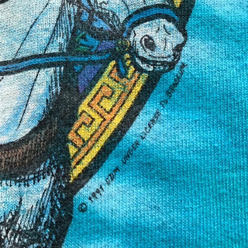 1991年のLA COLISEUMで行われたLAツアーTシャツです。海外でも人気のコロシアムに馬車で入場するスカルたちと、その後ろ姿が描かれており、スカルの後ろにちょこんとデッドベアが座っているのがとてもかわいい1着です。こちらも希少なコピーライト入り。フェスやイベントにおすすめです。ダメージ等もほとんど無くグッドコンディションです。