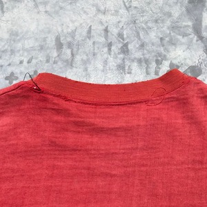 こちらのTシャツはその当時のイベントTシャツと思われ、染み込みでイベントのアイコンと名称が両面にプリントされています。素材はスラブ地のような独特の肌さわりです。フロント裾あたりに小穴、右袖に裂け、首元に小穴ございます。