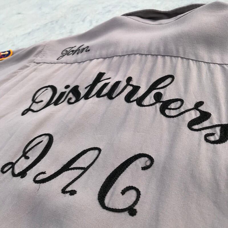 50's King Louie キングルイ ボーリングシャツ チェーンステッチ ワッペン グレー Mサイズ ヴィンテージ