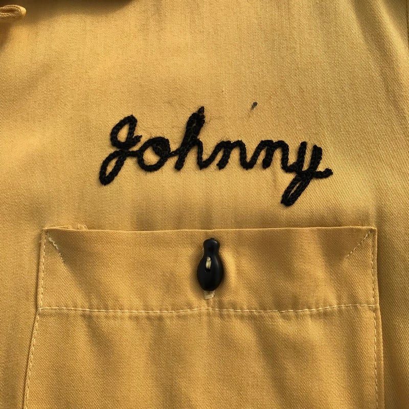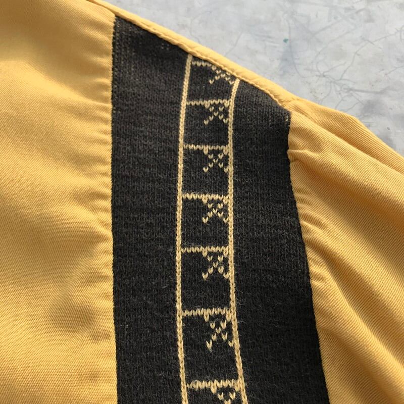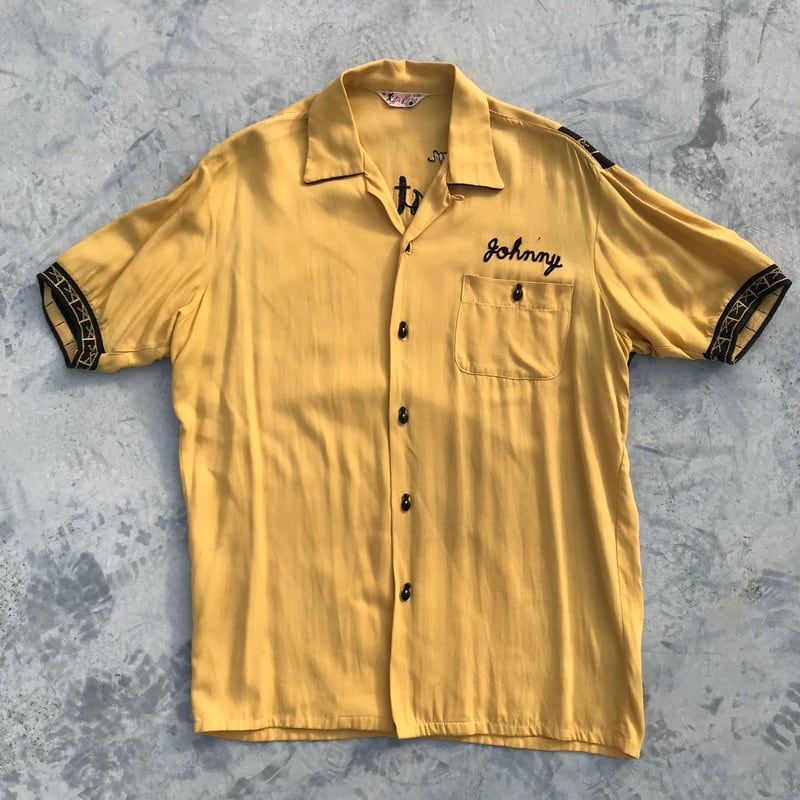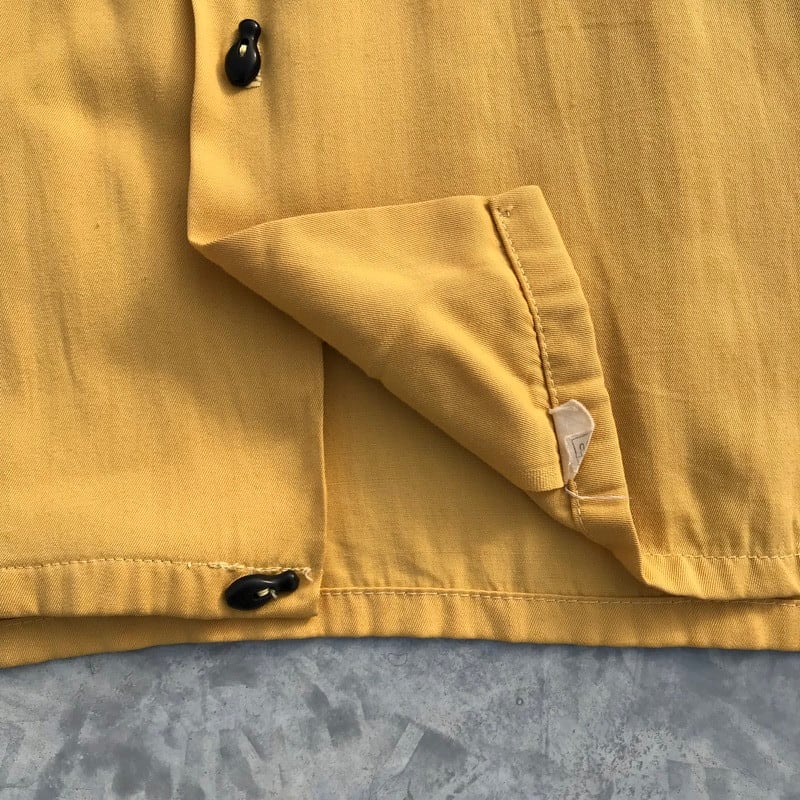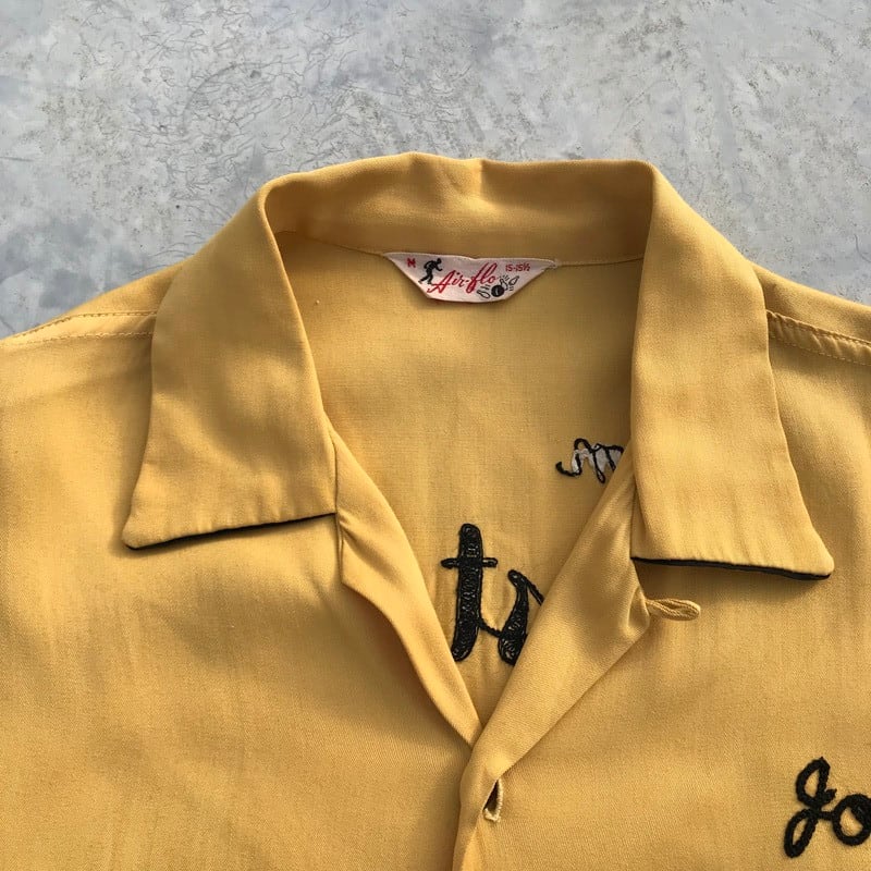 50's Air flo エアーフロー ボーリングシャツ ピンボタン チェーンステッチ 袖リブ イエロー ヴィンテージ Mサイズ