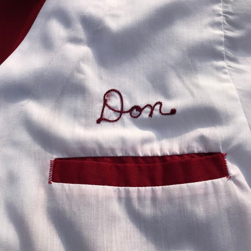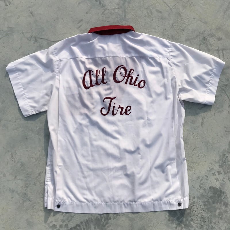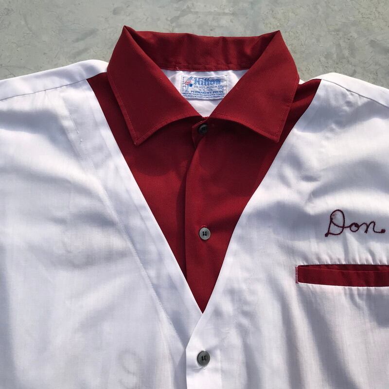 70年代頃のHiltonボーリングシャツです。こちらはあまり見かけないレイヤードのようなデザインが特徴で、エンジと歩愛との2トーンがとてもさわやかです。バックにはall Ohio Jireのステッチが入ります。人と被りにくいデザインですので、おススメです。