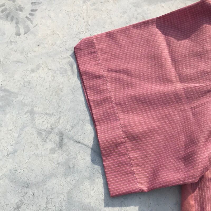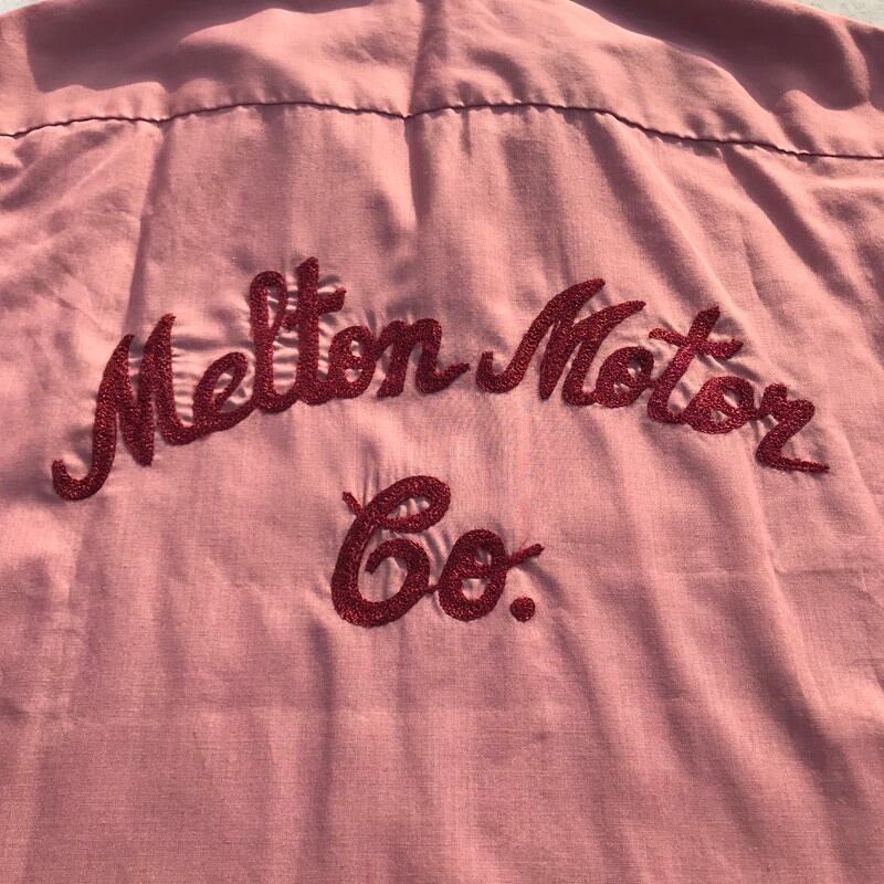 あまり見かけないピンストライプと無地の2トーンとなっており、非常に綺麗なカラーリングが特徴です。Melton Motor Co.のチェーンステッチがバックに入ります。大人なカラーリングでとてもお洒落ですのでのおススメです。