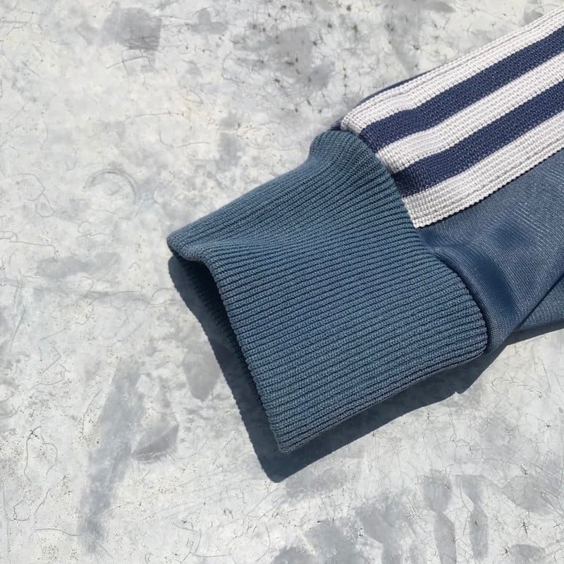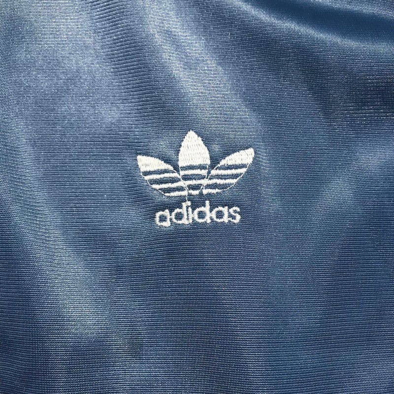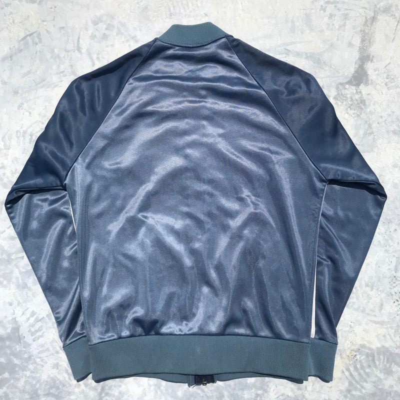 80年代頃のadidas ATP トラックジャージです。ATPとは1972年に発足した男子プロテニス協会です。シンプルで飽きの来ないデザインで当時からミュージシャンやファッショニスタも好んで着用されていた事でも知られています。カラーはオールマイティー合わせやすいネイビーですので、様々なコーディネートにお使いいただけます。ダメージ等はございませんが、フロントにうっすらとシミがございます。Sサイズですので、女性にもおススメです。