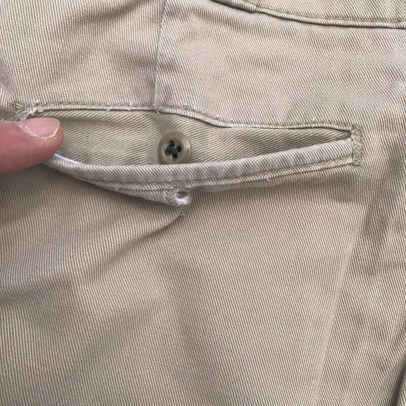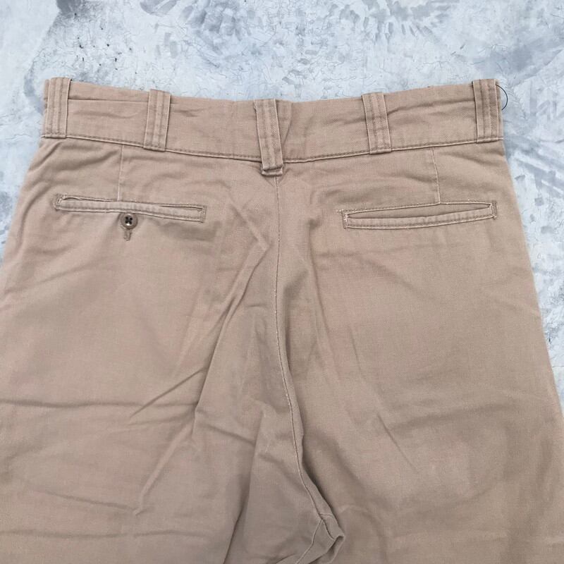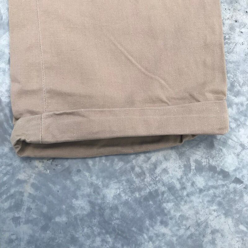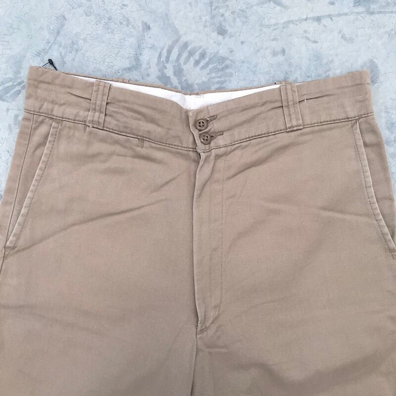 70年代頃のワークウェアブランドTUF NUTコットンワークチノです。フロントはダブルボタンで、TALONのセミオートマチックジッパーを採用しています。股はガゼットクロッチで動きやすい構造となっています。オーソドックスなベージュはオールマイティ使えるアイテムです。全体に使用感がございます。W32くらいのゴールデンサイズです。ワークブランド好きは必見です。