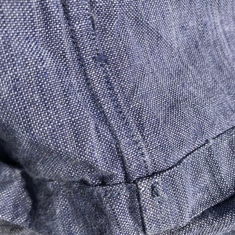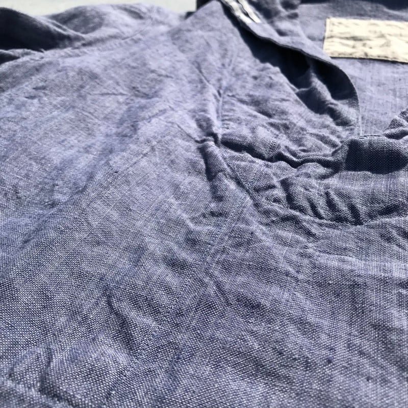 50年代頃のフランス海軍らめーセーラーシャツです。ラミーとは麻の一種、芋麻の事で、リネンよりコシがあり、水に濡れるとより強度が増す性質で水に近い海軍にはもってこいの素材です。シャンブレーの様なさわやかなライトブルーで、これからの季節にとても合わせやすいです。使用感もほとんど無く、デッドストックからのワンウォッシュ程度の美品です。あまり出ないアイテムですので、セーラーシャツをお探しの方は、いかがでしょうか。Mくらい