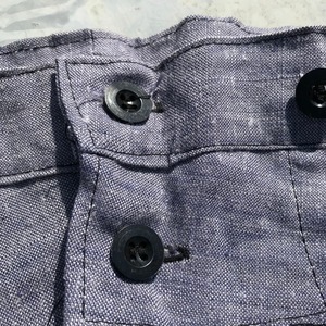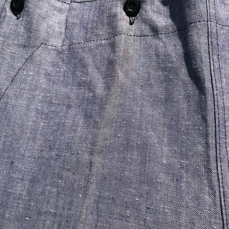50年代頃のフランス海軍ラミーセーラーパンツです。ラミーとは麻の一種、芋麻の事で、リネンよりコシがあり、水に濡れるとより強度が増す性質で水に近い海軍にはもってこいの素材です。ラミーセーラーシャツは比較的古着市場でもたまにみかけますが(それでも数は少ないです)、こちらのセーラーパンツはあまり流通していな希少なアイテムです。ウエストはW34くらいでゴールデンサイズ。フロントのフラップ↓にはベルトループと、両玉縁のスラッシュポケットがございます。フロントに保管時の日焼けとみられるフェードがみられますが、ワンウォッシュ程度の美品です。なかなか出ないアイテムですので、上下セットでコレクションしてみてはいかがでしょうか。
