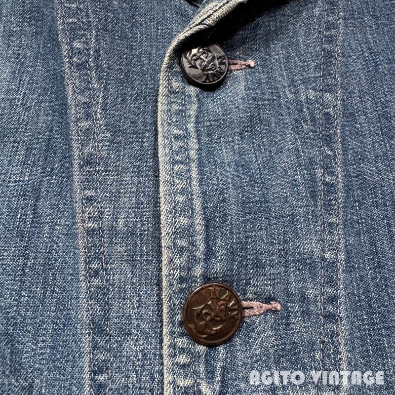 40's U.S.NAVY ショールカラーデニムカバーオール ヘチマ チェンジボタン 米海軍 WW II 大戦 36相当 USN 希少 ヴィンテージ BA-2802 RM3223H