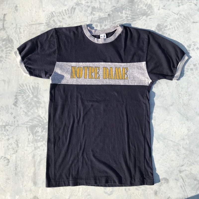 80's Champion チャンピオン リンガーTシャツ 切り替え NOTRE DAME トリコタグ ネイビー グレー 希少 Lサイズ USA製 ヴィンテージ