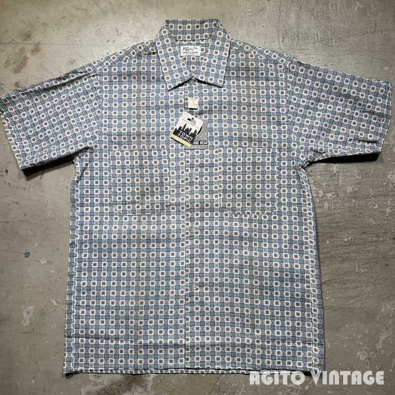 60's TOWN TOPIC タウントピック プリントコットンS/Sシャツ デッドストック NOS 小紋柄 オープンカラーシャツ Sサイズ 希少 ヴィンテージ BA-2805 RM3226H