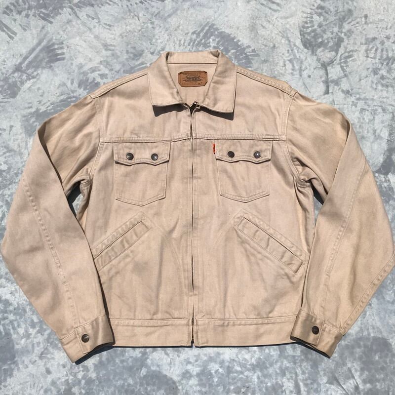 90's Levi's リーバイス 70727 ジップアップコットンジャケット オレンジタブ ベージュ Mサイズ 日本製