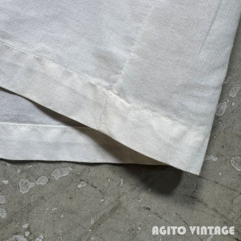 60年代頃のMcGREGORオープンカラーシャツです。40年代頃のMcGREGOR コットンオープンカラーシャツです。McGREGORは1921年に創業し、100年を越える老舗アメリカンカジュアルブランドです。ご紹介するこちらのアイテムは、襟芯が入るループボタンの開襟仕様で、左胸のみウェルとポケットが付きます。肩とサイドは内縫いです。特徴的なブロック体はプリントではなく生地に織り込まれたデザインです。襟元にやや薄汚れがございます。袖などにも地さなシミが見られますがコンディションは良好かと思います。Mサイズ表記ですのでサイズの合う方も多いのではないでしょうか。今回色違いも入荷していますので、マクレガーがお好きな方は是非2色セットで購入されても良いかもしれません。古いヴィンテージシャツの同モデルで色違いが一緒に出る機会は少ないと思いますので是非この機会にいかがでしょうか。色味も紅白で目出度い感じもオススメポイントです。