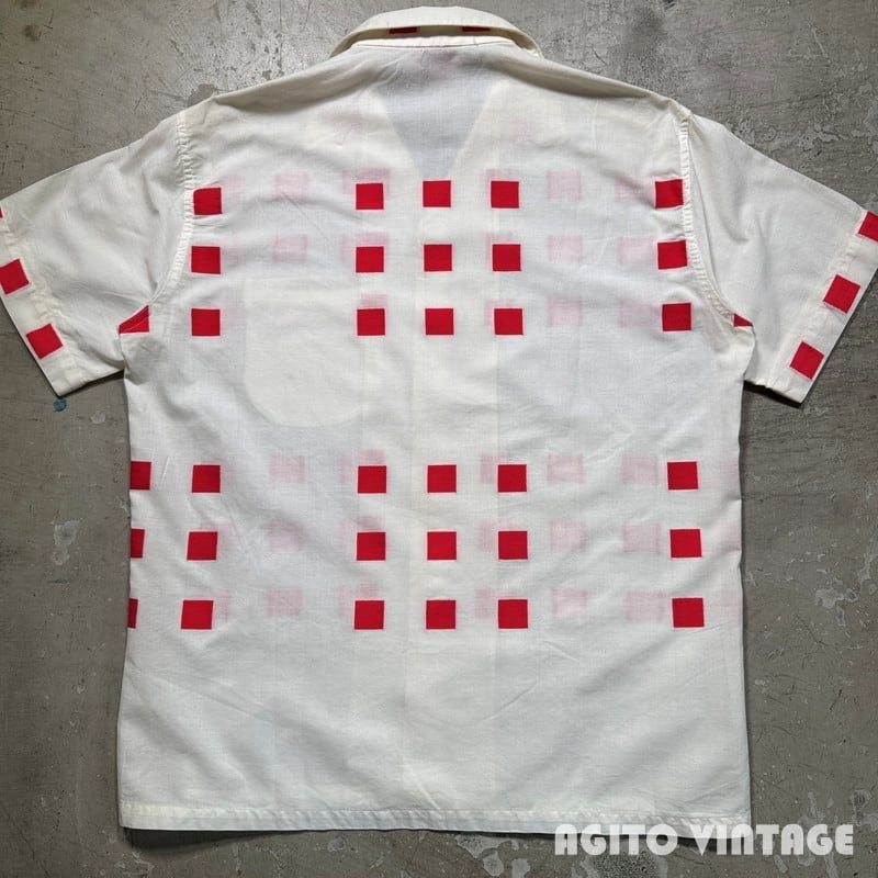 60's McGREGOR マクレガー オープンカラーシャツ ブロック織柄 開襟 ホワイト/レッド 襟芯 Mサイズ 希少 ヴィンテージ BA-2808 RM3229H