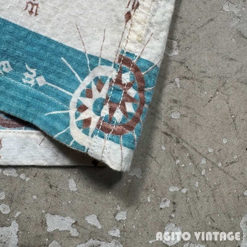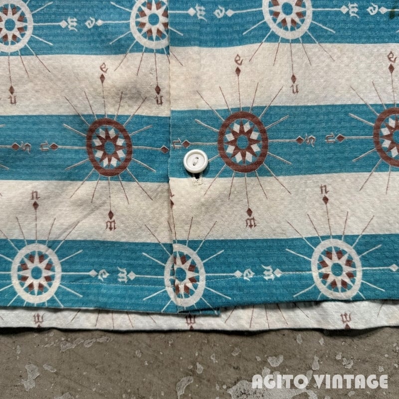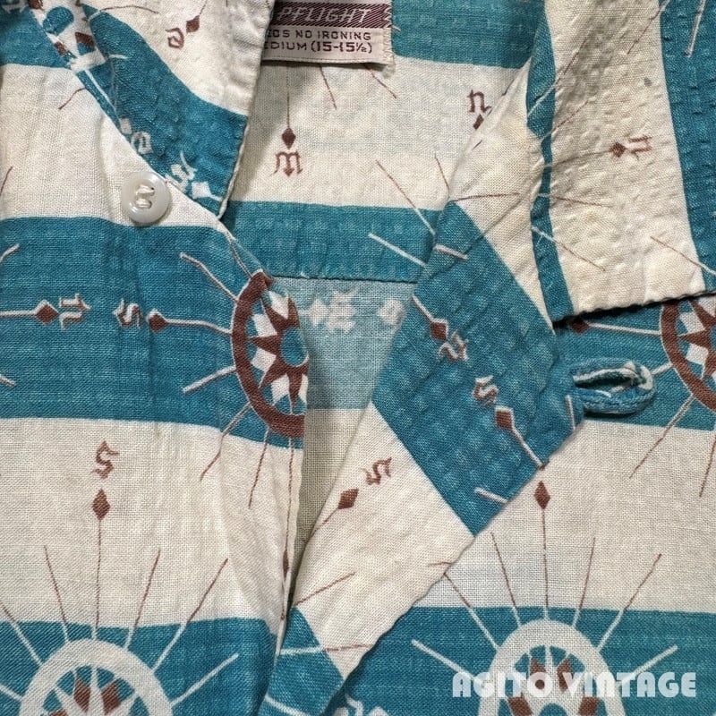 50's PENNEY'S TOPFLIGHT ペニーズ トップフライト シアサッカーオープンカラーシャツ 羅針方位柄 開襟 ストアブランド Mサイズ 希少 ヴィンテージ BA-2812 RM3233H