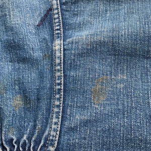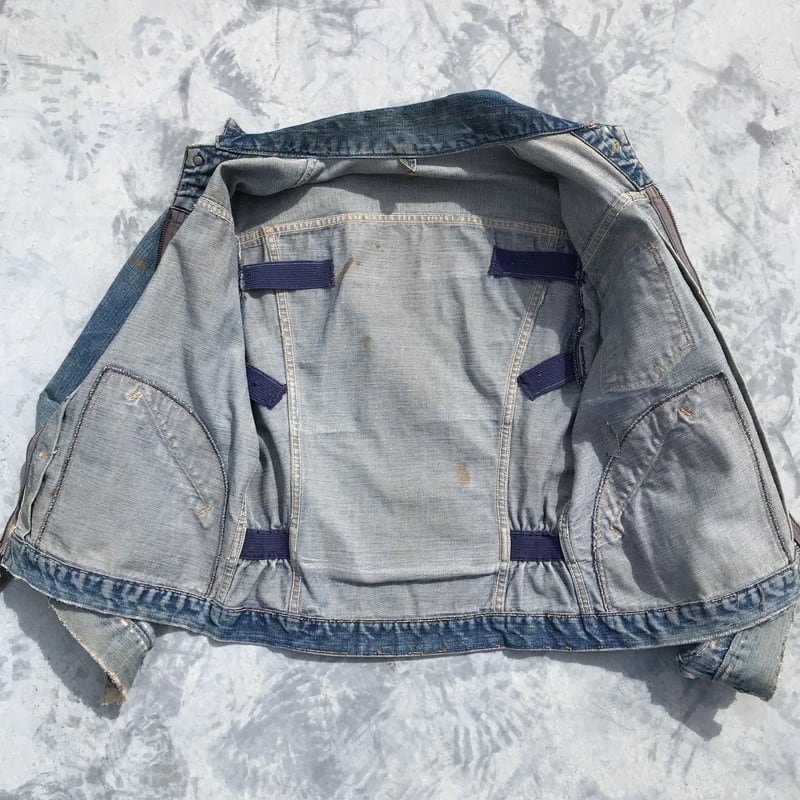 タグは欠損しておりますが、ディティール等から11MJZの前期と判断しております。全体に擦れやシミ、ダメージによるリペアがございますが、ヴィンテージらしい雰囲気が素晴らしい1着です。