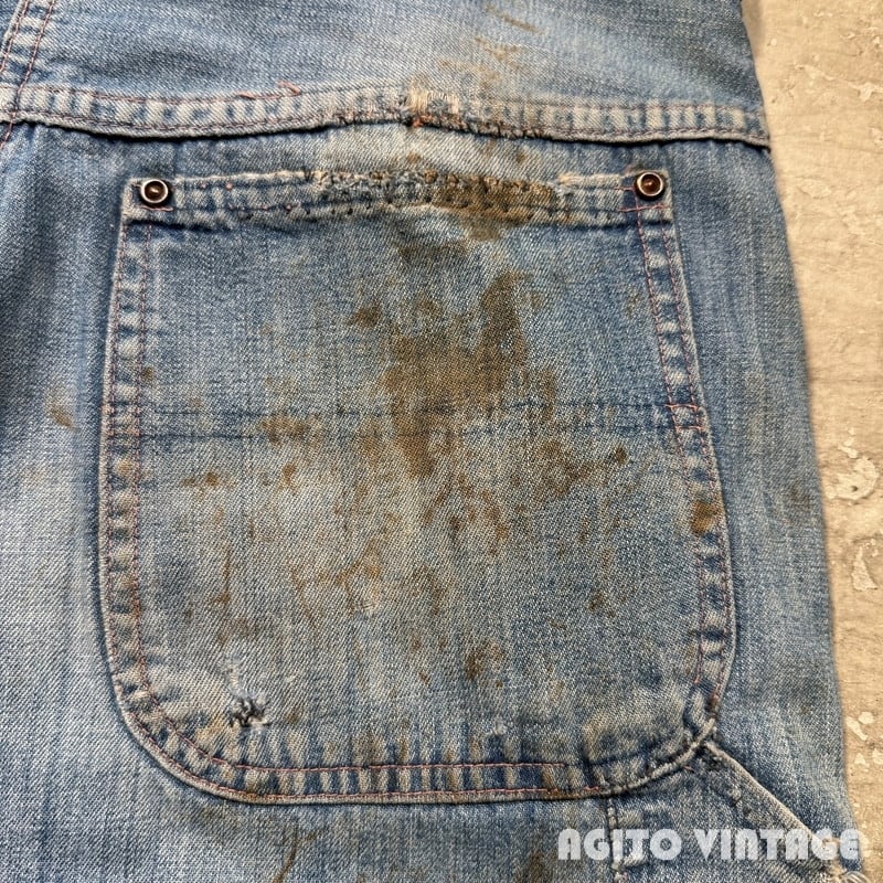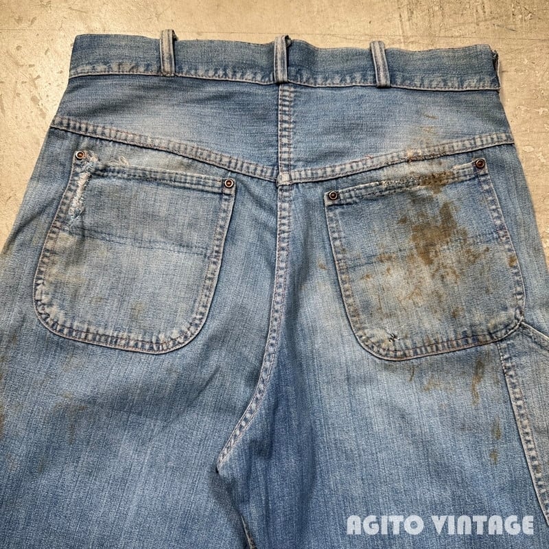 40's~ Model モデル デニムペインターパンツ ワークパンツ UFOリベット 股リベ ダブルステッチ ボタンフライ ウエスト実寸W31 希少 ヴィンテージ BA-2821 RM3242H