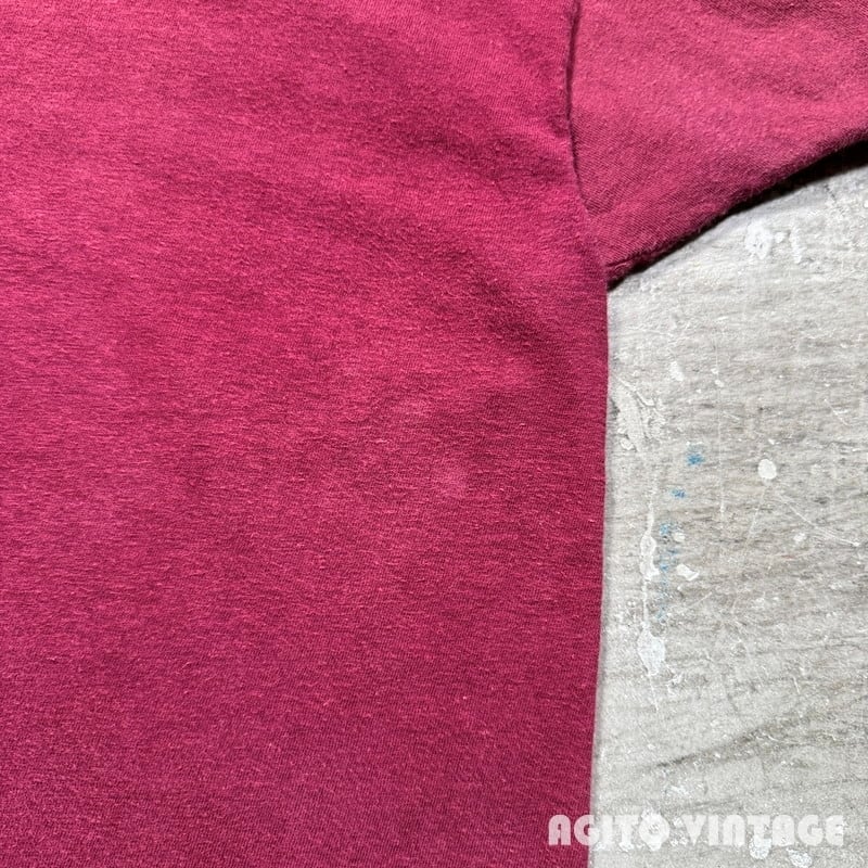 70年代頃のChampionリンガーTシャツです。バータグが付くUSA製です。カレッジ物やミリタリー等で使われる事の多いリンガーTeeですが、こちらはプリントが入らない無地の個体です。無地のリンガー自体は存在しますが、エンジとイエローの個体はあまり見かけない印象です。全体的に使用感があり、色褪せや毛羽立ちがございます。裾に小さなピンホールがございますがその他目立つダメージは特にございません。XL表記ですが縮みがある為M相当かと思われます。エンジ×イエローの組み合わせはデニムやミリタリーパンツ、チノなど相性は抜群ですので王道アメカジスタイルがお好きな方は是非この機会にいかがでしょうか。リンガーなので志やうやジャケットのインナーでも合わせやすいのでオススメです。