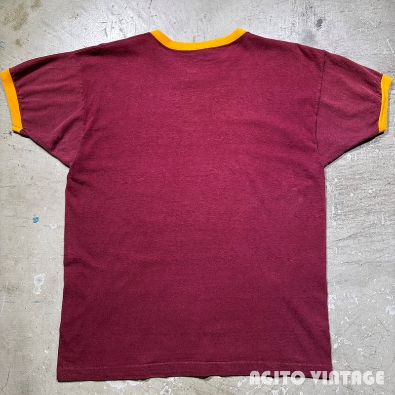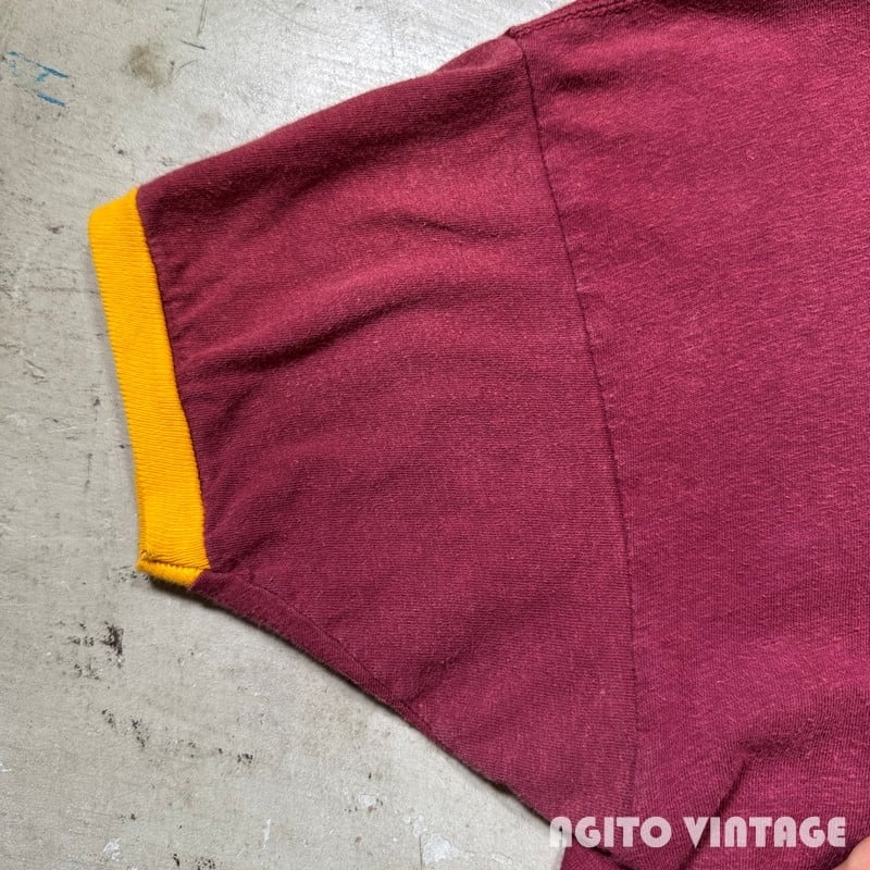 70's Champion チャンピオン リンガーTee 無地 バータグ エンジ/イエロー USA製 XL 実寸M相当 希少 ヴィンテージ BA-2824 RM3245H