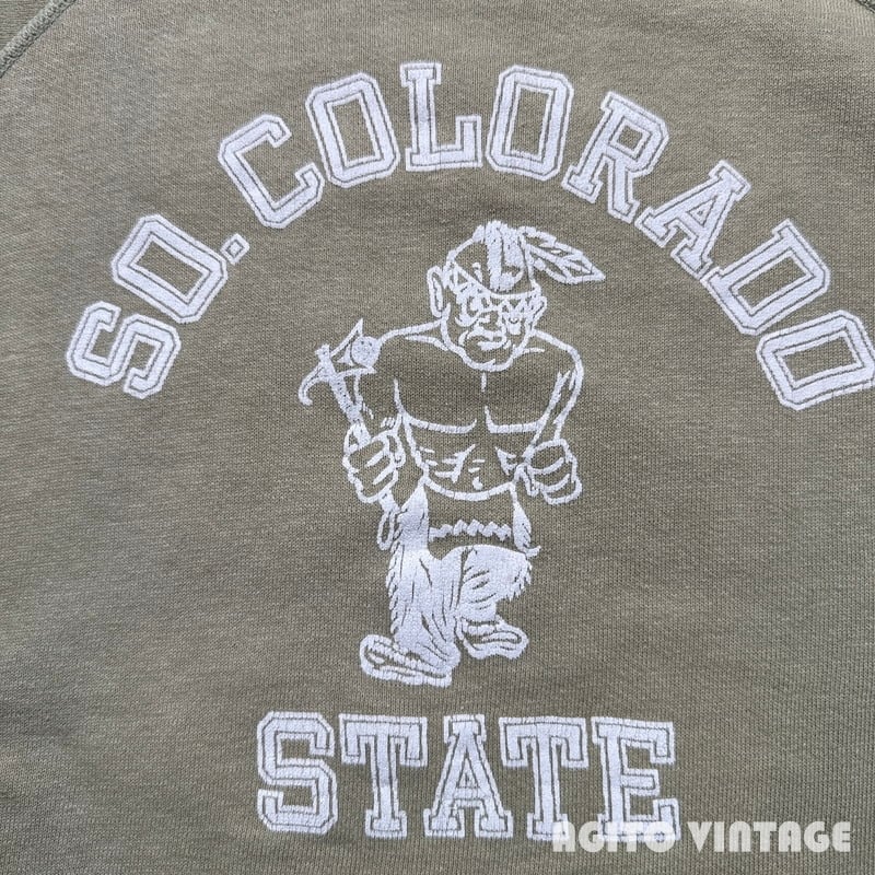 60's ARTEX S/Sカレッジスウェット 両面3段プリント インディアン ライトグリーン SO.COLORADO STATE Lサイズ 希少 ヴィンテージ BA-2833 RM3254H