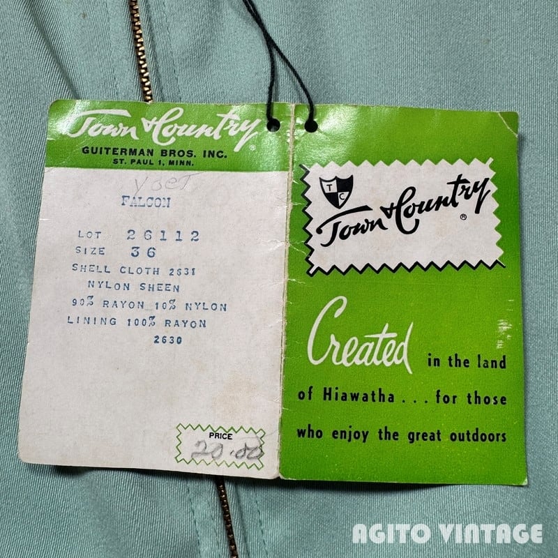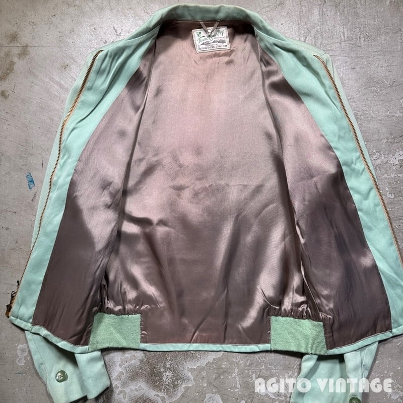 50's GUITERMAN BROS INC. TOWN&COUNTRY ギャバジンジャケット レーヨン ミントグリーン ロカビリー タグ付き グッドコンディション TALON size36 希少 ヴィンテージ BA-2836 RM3257H