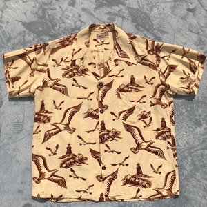 40's 50's Catalina カタリナ レーヨン ハワイアンシャツ アロハシャツ 海鳥 灯台 オールオーバーパターン Mサイズ ヴィンテージ 希少