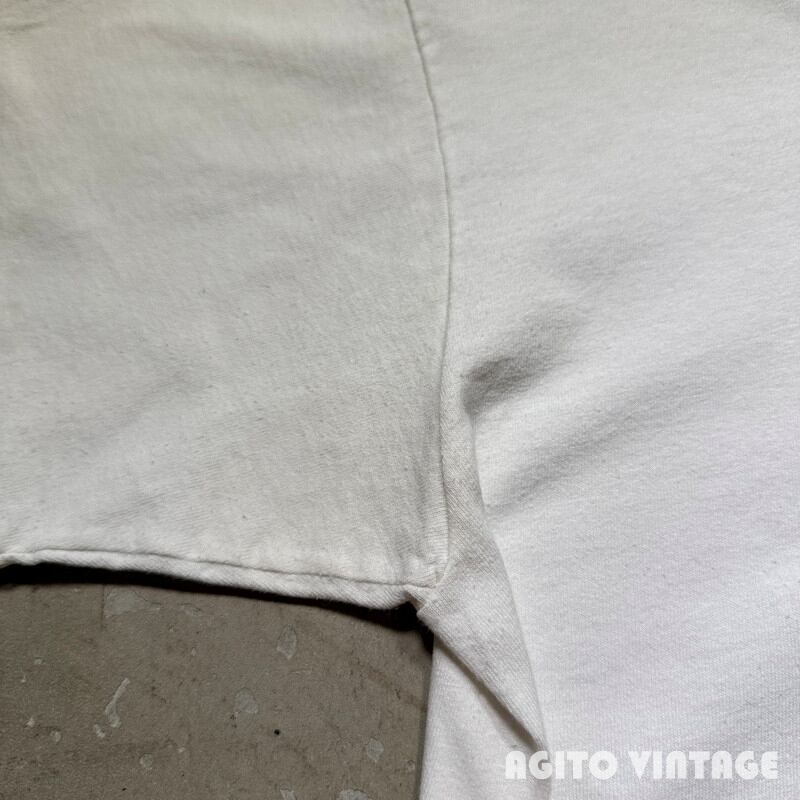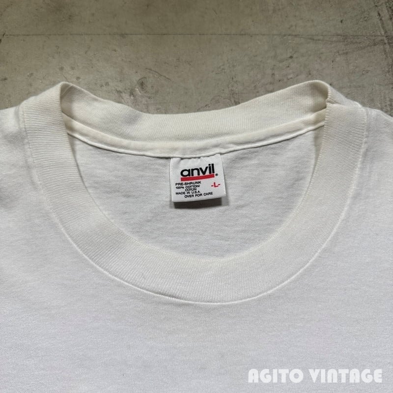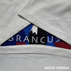 90年代のConstantin BrancusiアートTeeです。ボディはUSA製のanvilで袖裾共にシングルステッチです。Constantin Brancusi(1876-1957)は20世紀を代表する彫刻家です。ご紹介するこちらはフィラデルフィア美術館で販売されていたTシャツで、フロントにはブランクーシの彫刻「Infinity Column(無限柱)」が抽象的に描かれています。全体的にやや薄汚れや毛羽立ちがありプリントに色褪せがございます。腹部に小さなシミがございます。極うっすらと脇に変色があるようですがあまり目立たないと思います。ダメージは特にございません。L表記で程よくゆったりとしたサイズ感です。BRANCUSIのアートTeeは見かける機会も少ないので人と被りたくない方にはお勧めです。
