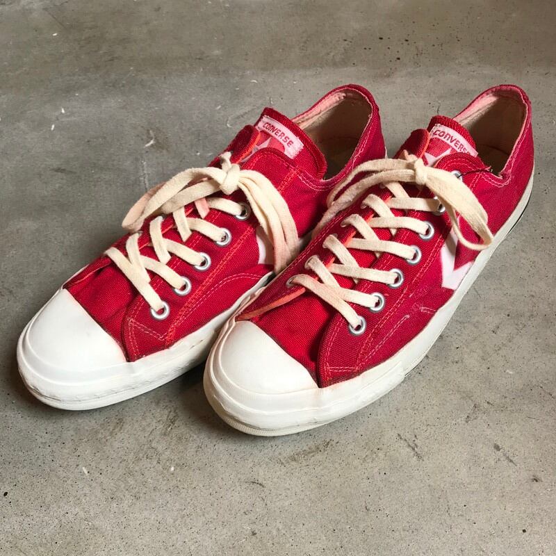 70年代のCONVERSE コンバース CX PRO250です。オールスターやチャックテイラー同様にキャンバス地となっており、内側当て布、サイドステッチがございます。サイドはスターが無い珍しいデザインとなっております。シュータンとインソールにトラックスターが入ります。ヒールパッチは1つ星です。ソール減りも少なくUS8.5とゴールデンサイズです。色移りする恐れがございますので、白いソックスやパンツ等は避けて使用してください。希少なUSA製。