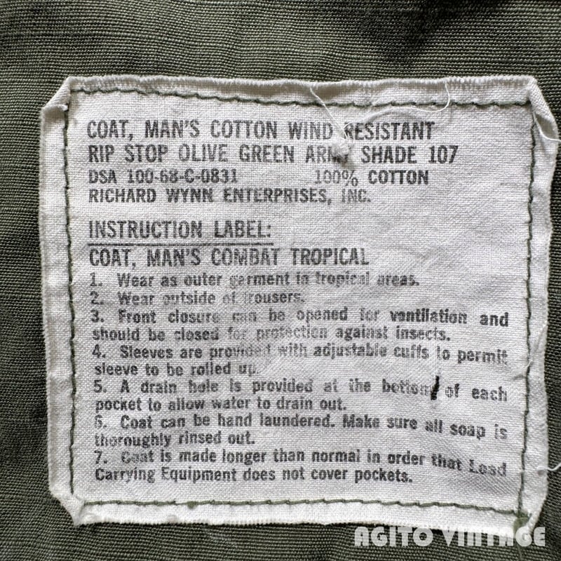 60's U.S.ARMY ジャングルファティーグジャケット リップストップ 2トーン DSA100-68-C-0831 RICHARD WYNN ENTERPRISES,INC. MEDIUM REGULAR 希少 ヴィンテージ BA-2849 RM3270H