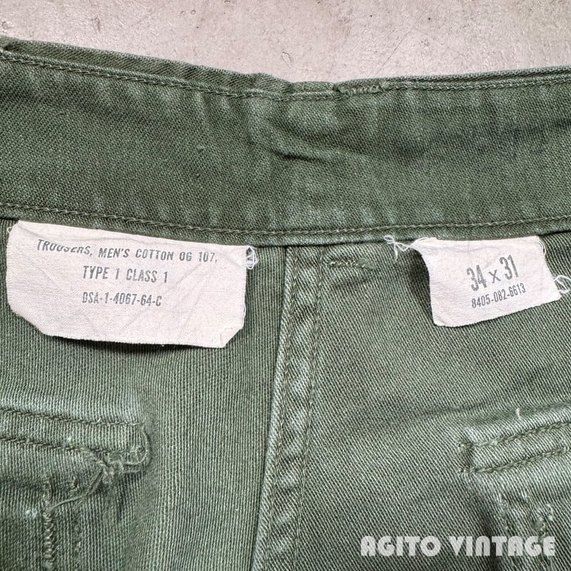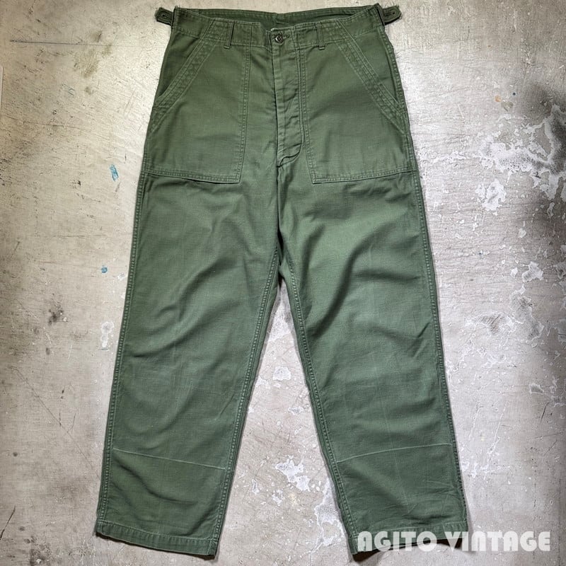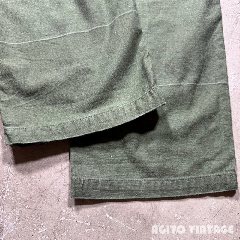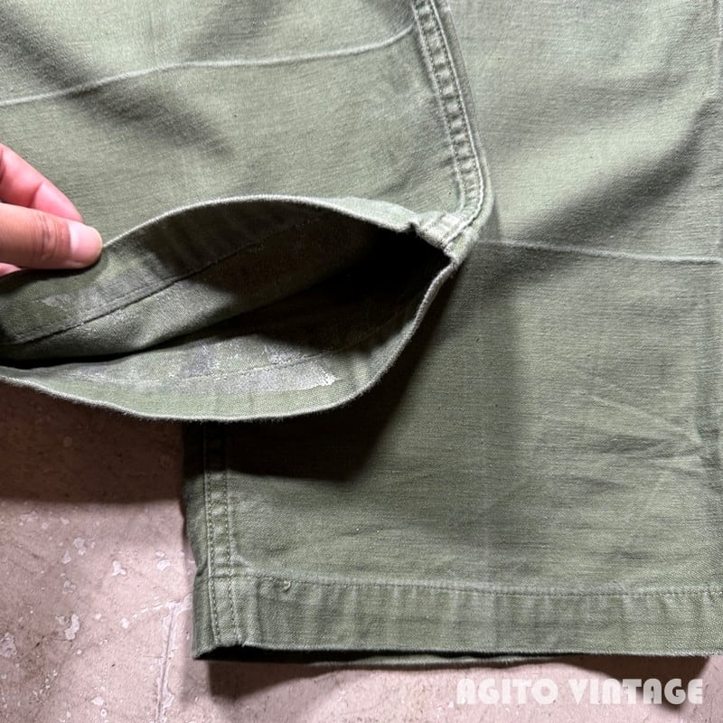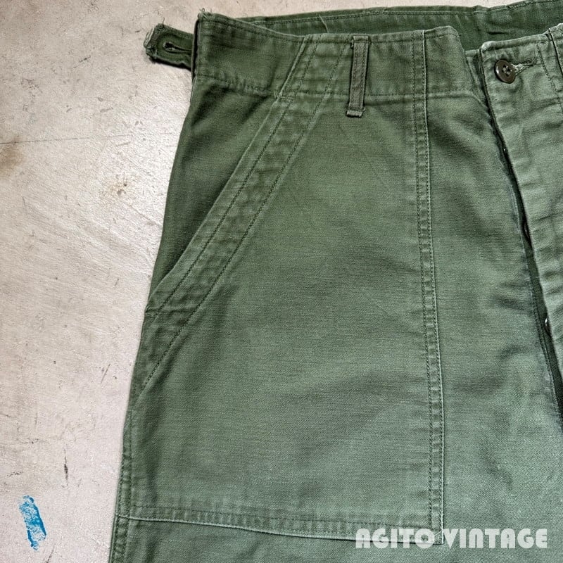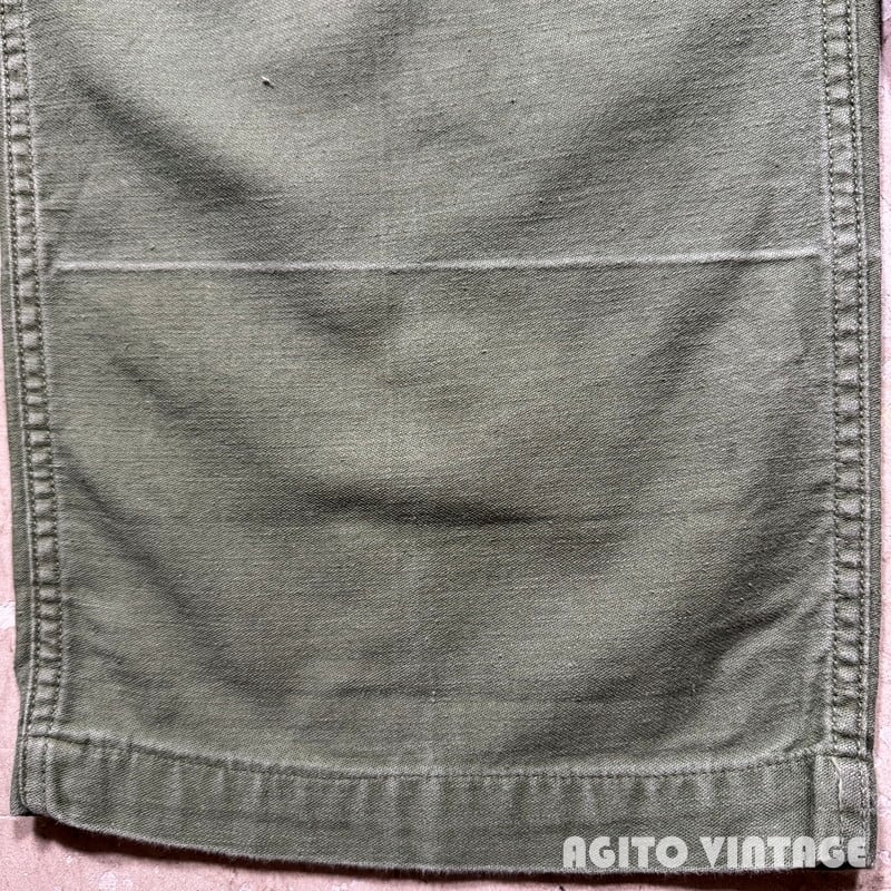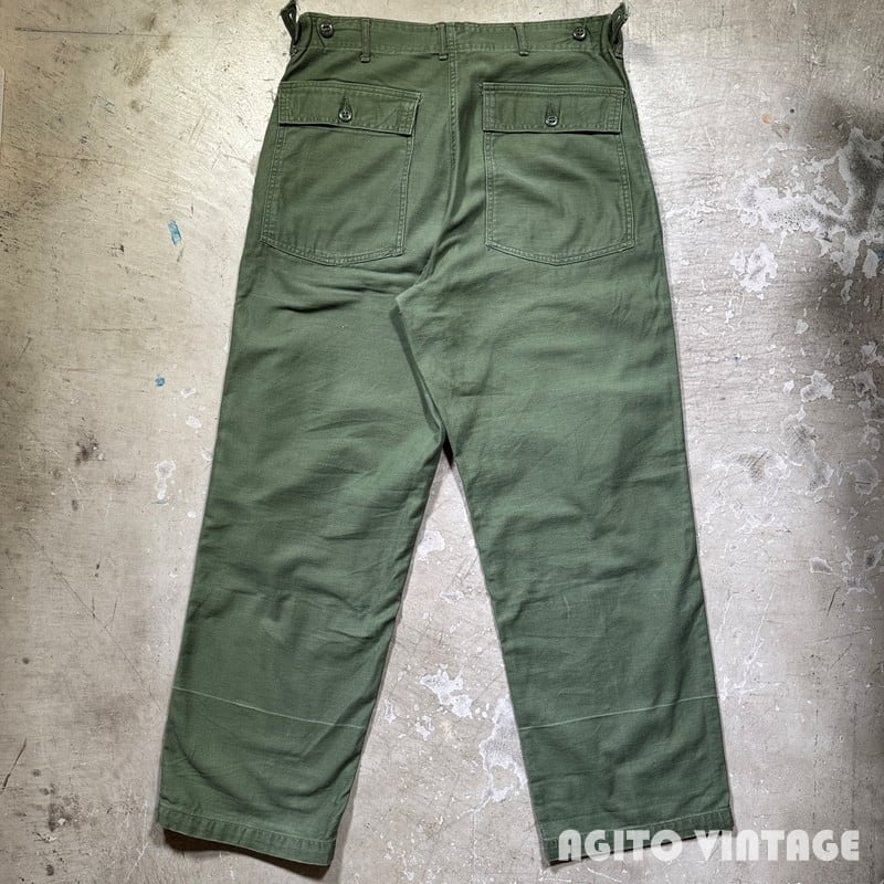 60's U.S.ARMY OG107 コットンサテンベイカーパンツ オリーブグリーン サイドアジャスター付き DSA-1-4067-64-C ボタンフライ W34インチ 米軍 希少 ヴィンテージ BA-2851 RM3272H