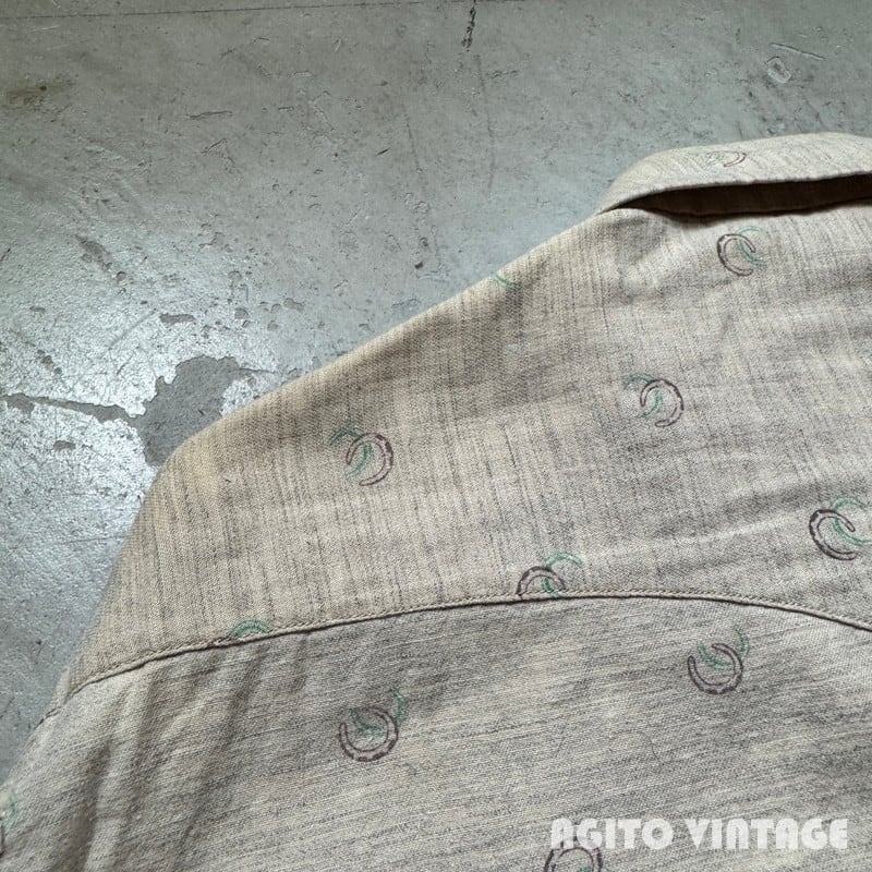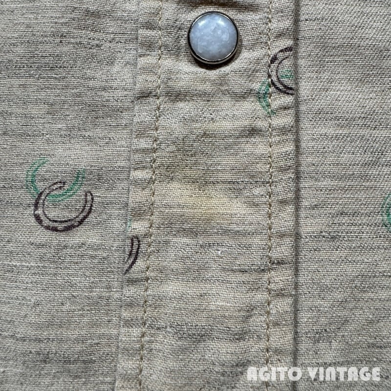 50's TEXAS TOGS テキサストグス プリントコットンウェスタンシャツ フランネル 馬蹄柄 絣柄 フルスナップボタン SAN ANTONIO S相当 希少 ヴィンテージ BA-2858 RM3279H