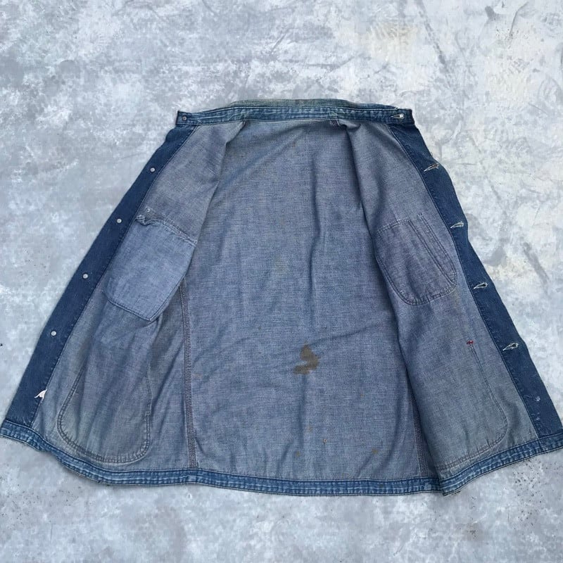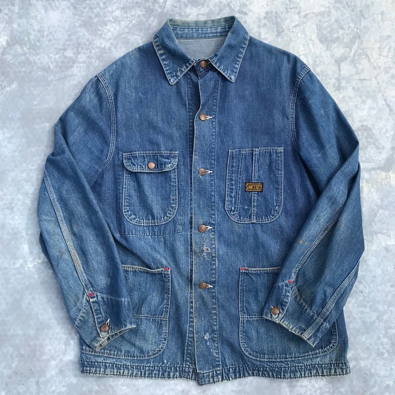 50's 60's UNKNOWN デニムカバーオール SANFORIZED ワークジャケット チョアジャケット アメカジ 38位 希少 ヴィンテージ