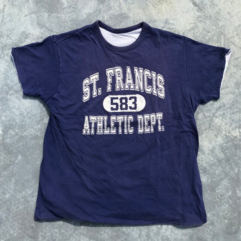 80's Champion チャンピオン リバーシブル Tシャツ カレッジT ST FRANCIS 3段プリント ネイビー ホワイト トリコタグ XL 希少 ヴィンテージ