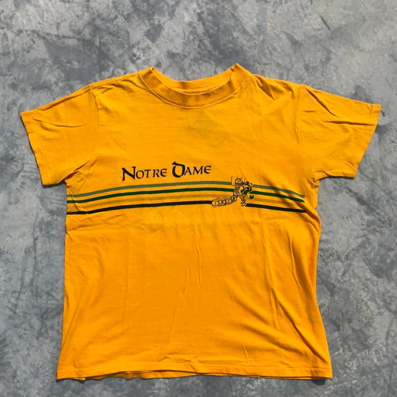 80's Champion チャンピオン 染込みプリント Tシャツ NOTRE DAME イエロートリコタグ 後期 L 希少 ヴィンテージ