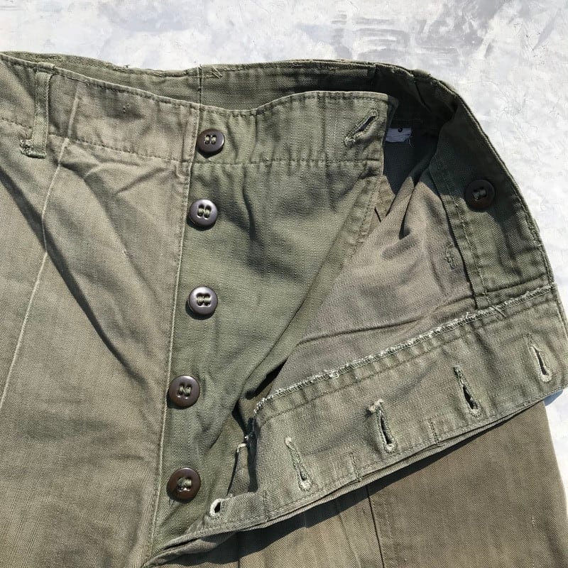 40's 50's ミリタリー HBT トラウザーズ ヘリンボーンパンツ USN USMC 海軍 モディファイ 13スター W28 希少 ヴィンテージ