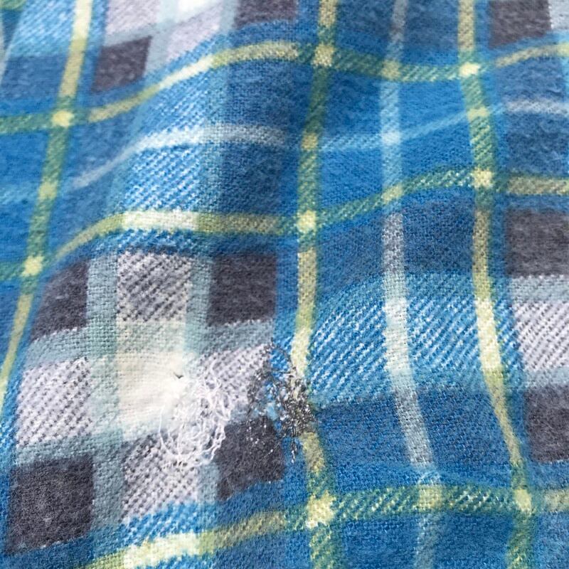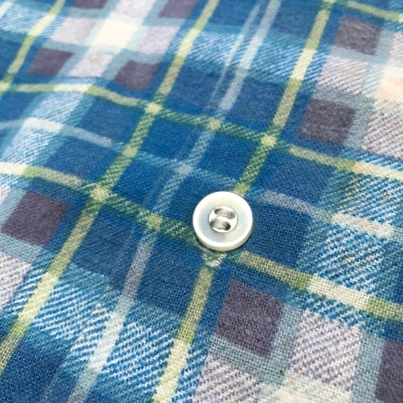 60年代頃のSussexプリントネルシャツです。RIVERSIDE SHIRT & UNDERWEARという会社のプライベートブランドと思われるこちらは、淡いブルーで構成されたプリントネルとなっており生地感の良いフランネル地で袖通しも快適です。左袖に2箇所リペアがございます。全体に使用感や、ところどころに薄汚れがございます。淡い色味は主張しすぎないので、幅広いスタイリングに使えます。米国製、Lサイズ。