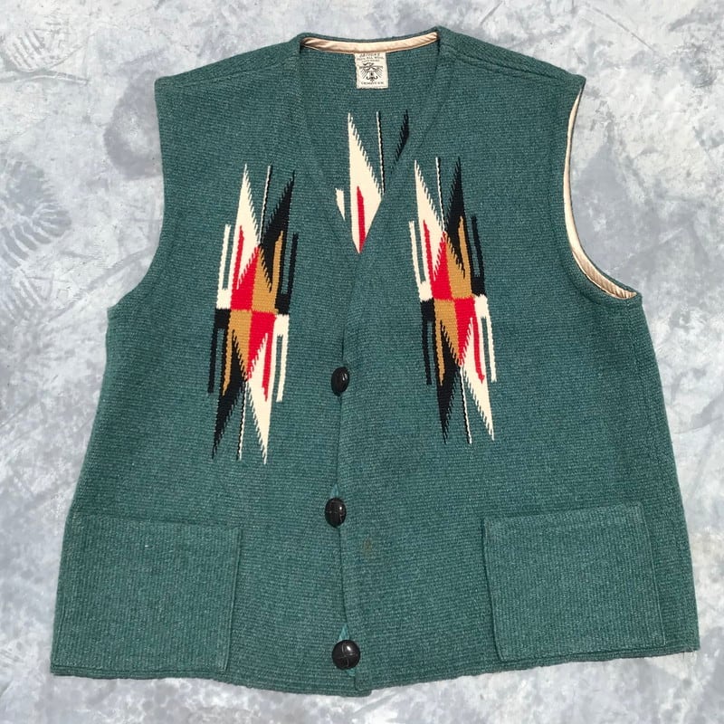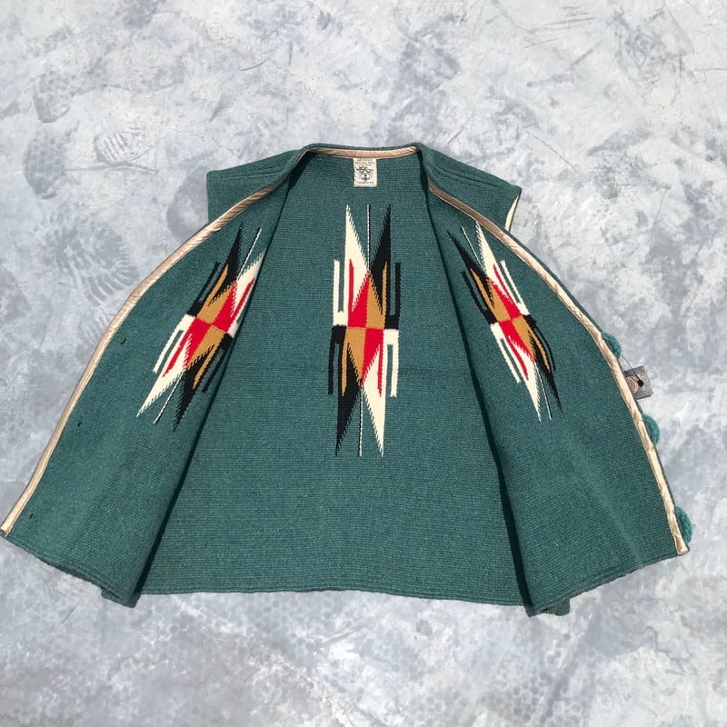 ORTEGA'S オルテガ チマヨベスト スクエアフロント グリーン系 44位 クルミボタン 美品 希少 ヴィンテージ