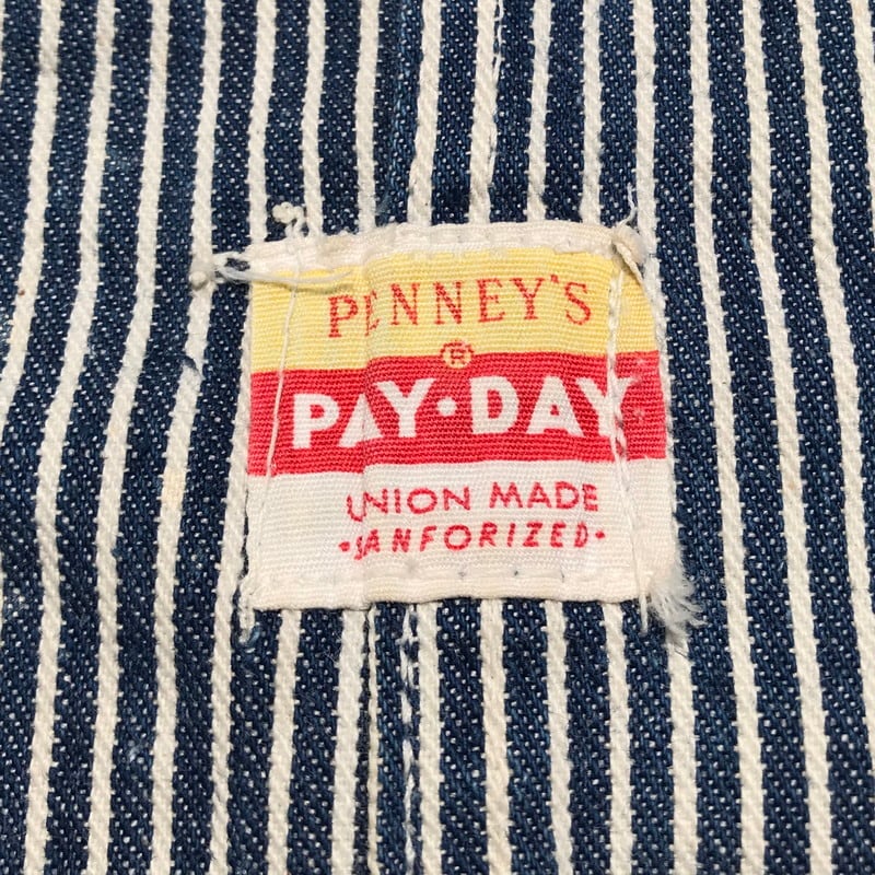 50's PAY DAY ペイデイ ヒッコリーオーバーオール JC Penny ワーク W42 ゆったり レイルロード 希少 ヴィンテージ