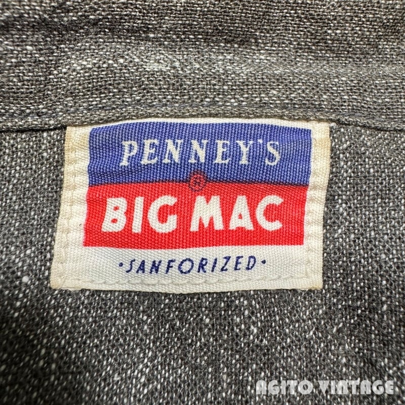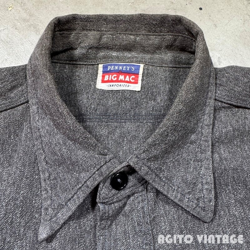 50's BIG MAC ビッグマック ブラックシャンブレーワークシャツ PENNEY'S ストアブランド マチ無し 台襟 S~M相当 希少 ヴィンテージ BA-2881 RM3302H